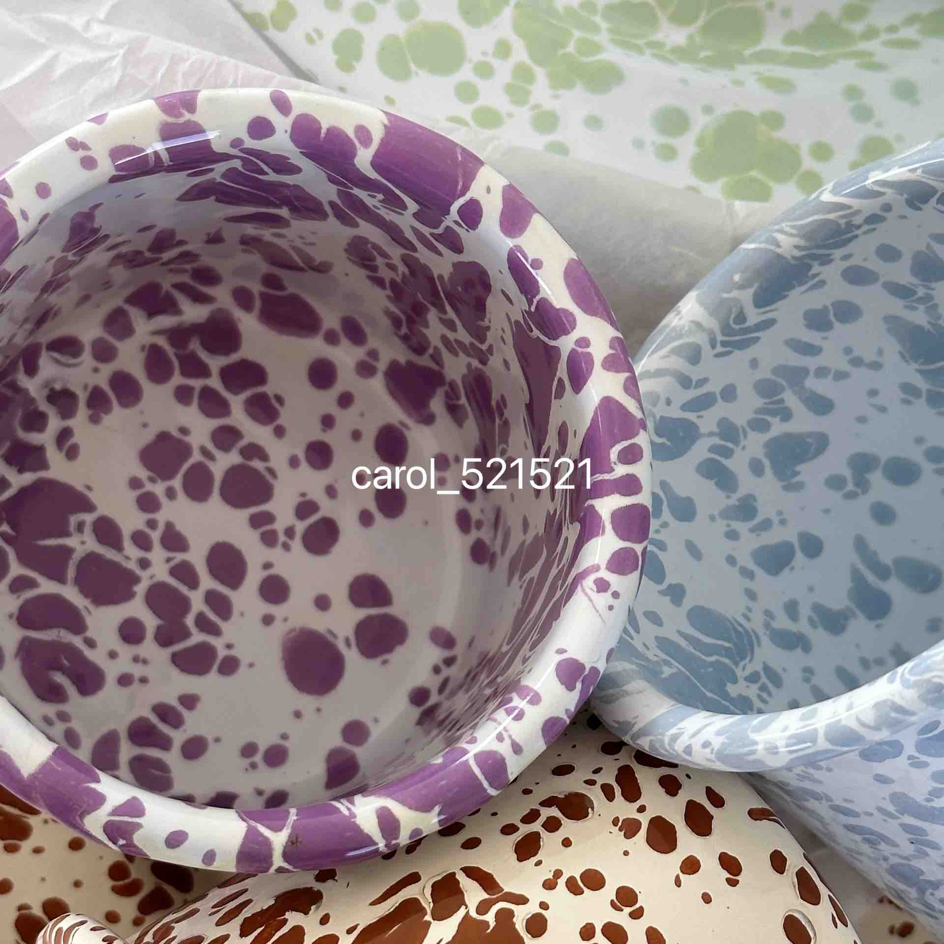 注意:手工搪瓷产品,存在手工品不能避免的特有痕迹,如杯口、把手、盘子边缘背面等会因难以上釉手工相对不光滑;人工泼墨,每件图案色泽会有些许差异等均不属于质量问题,理解再拍介意慎拍!