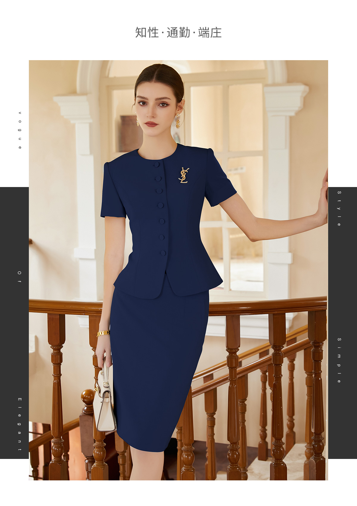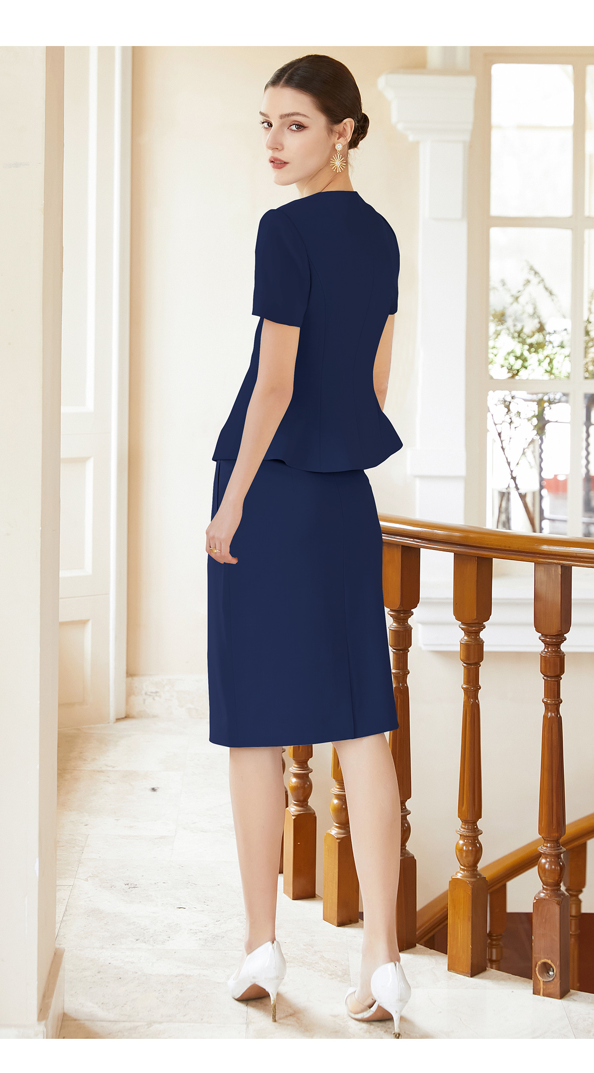 IWY/夏季新款藏蓝色短袖连衣裙夏气质时尚通勤干练假两件职业装CS2026