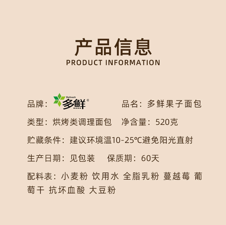 多鲜果子面包 500g/份