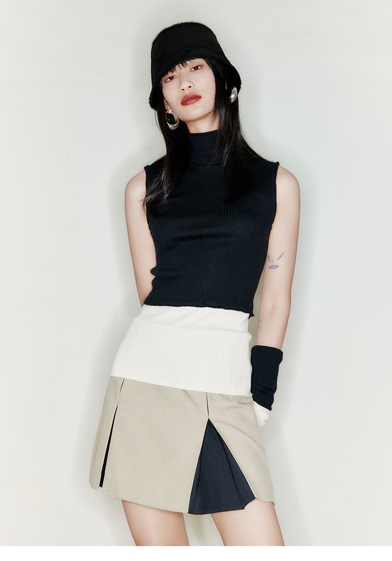 【罗塔】细缝撞色拼接小A字半裙/2200020B