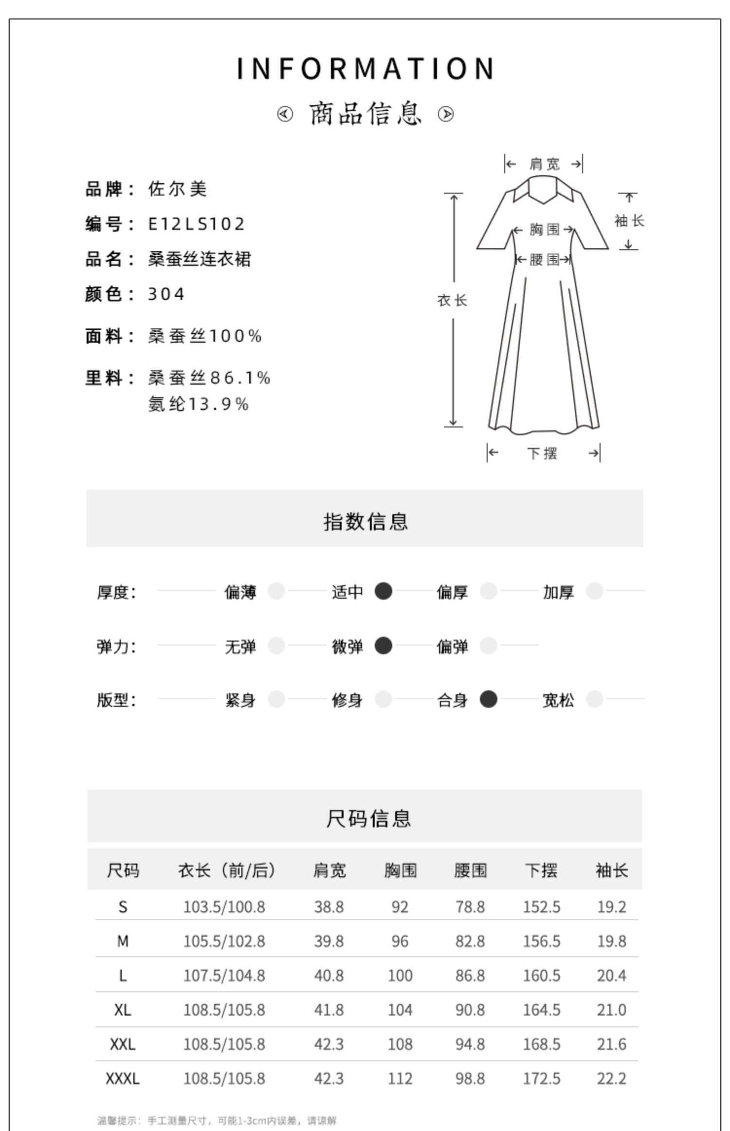 佐尔美夏季新款 桑蚕丝乔其真丝连衣裙女E12LS102