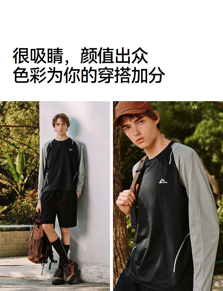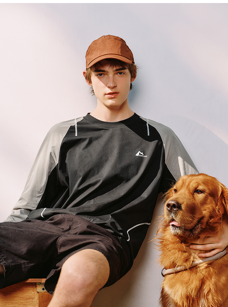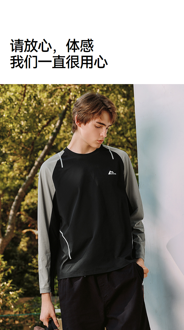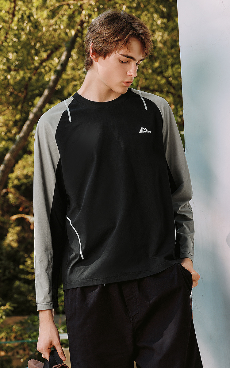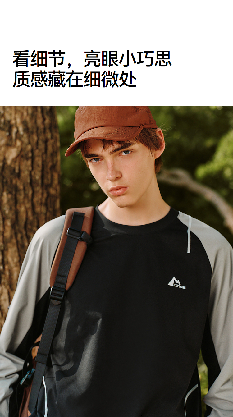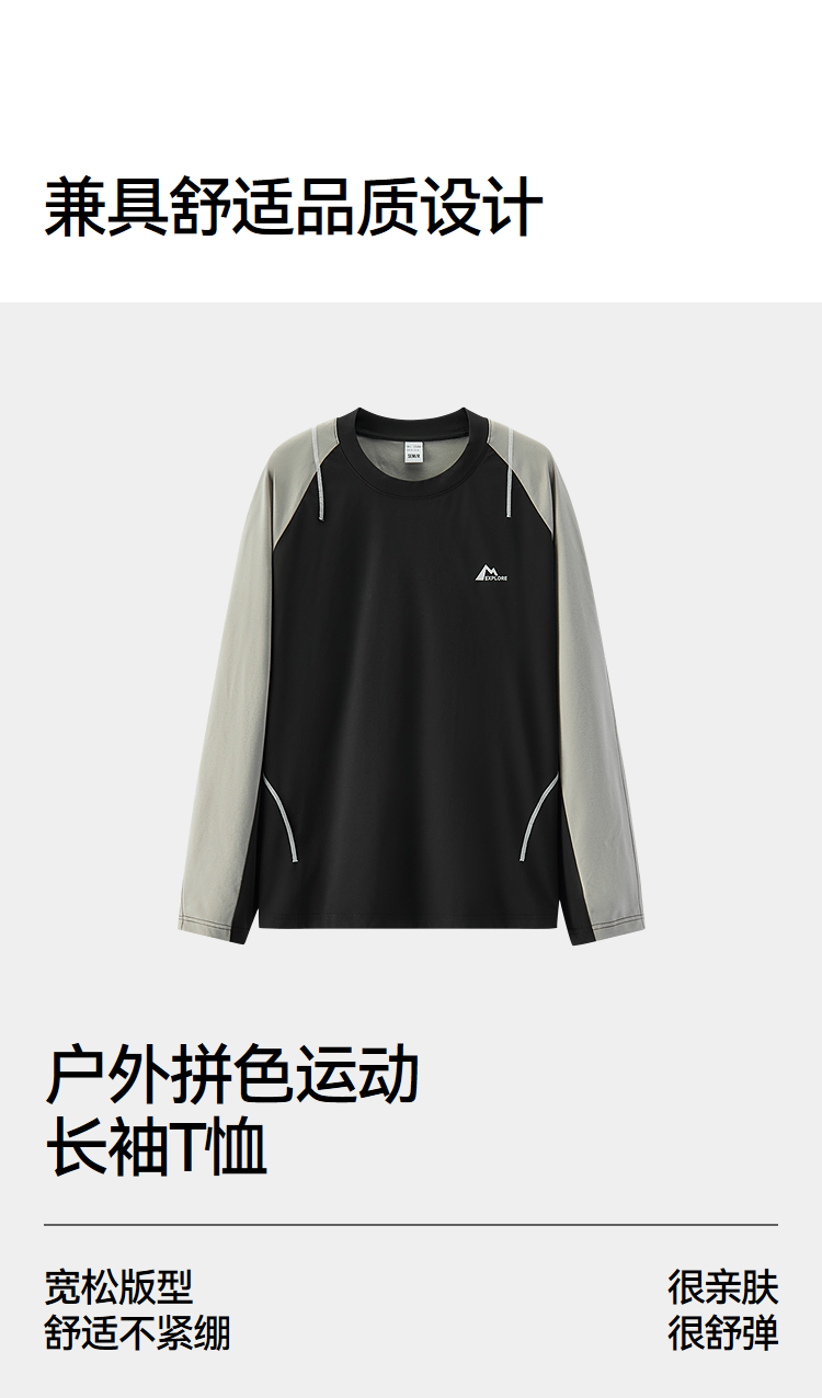 森马长袖T恤男冬季拼色运动打底t恤宽松2025新款时尚户外印花上衣