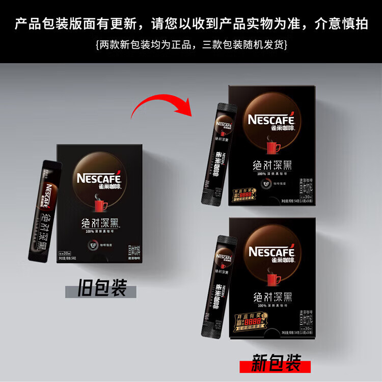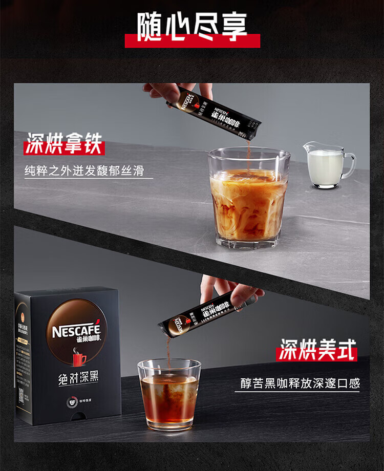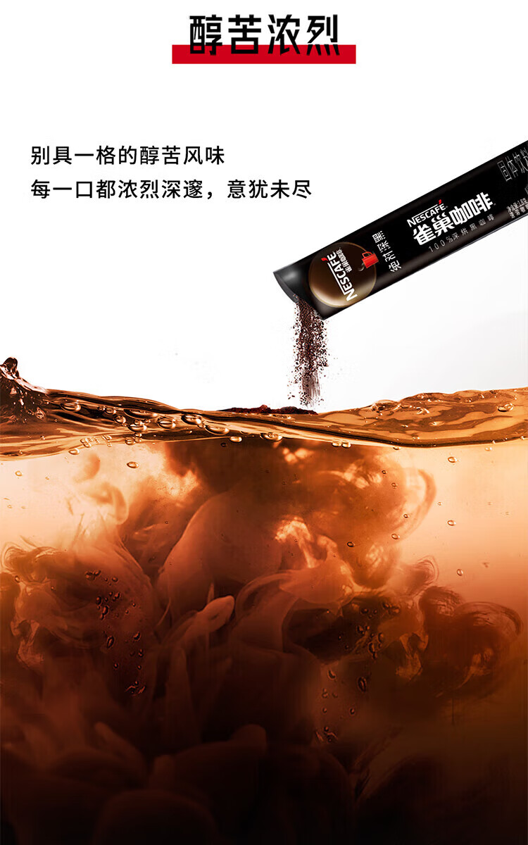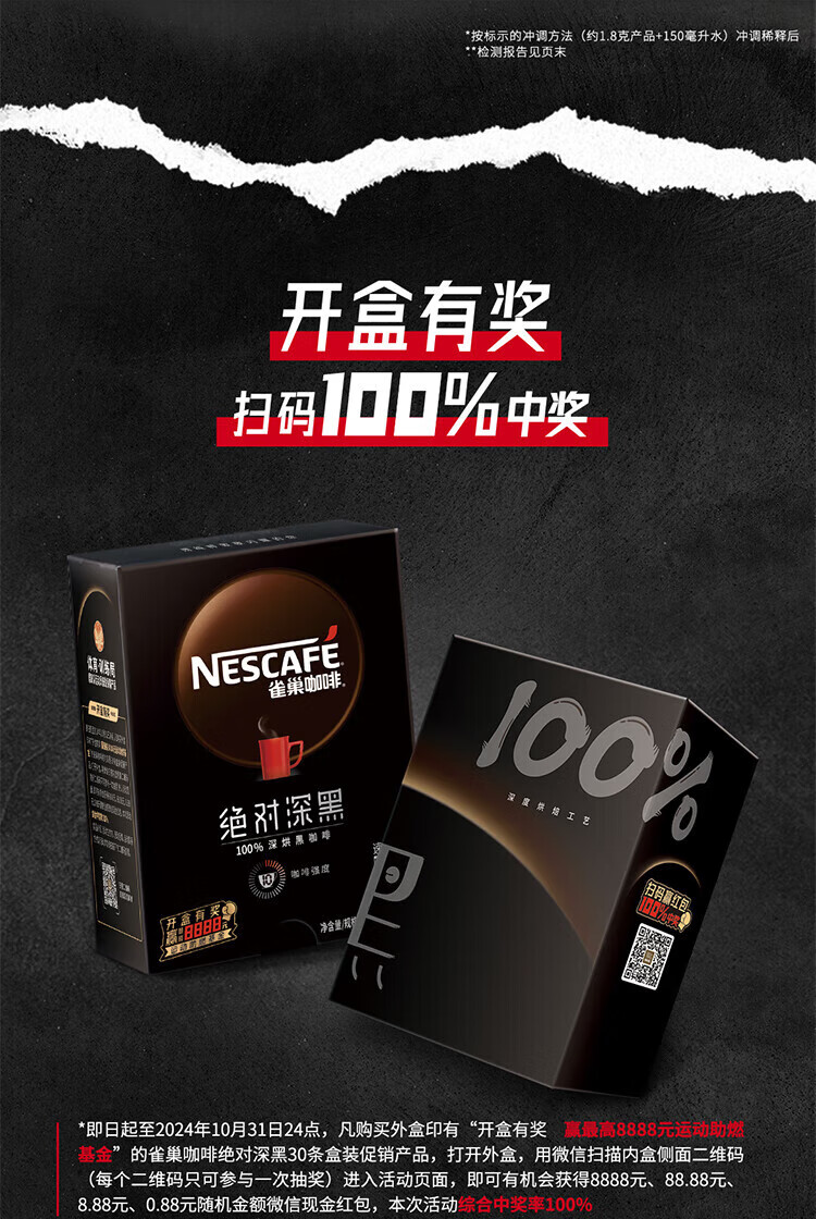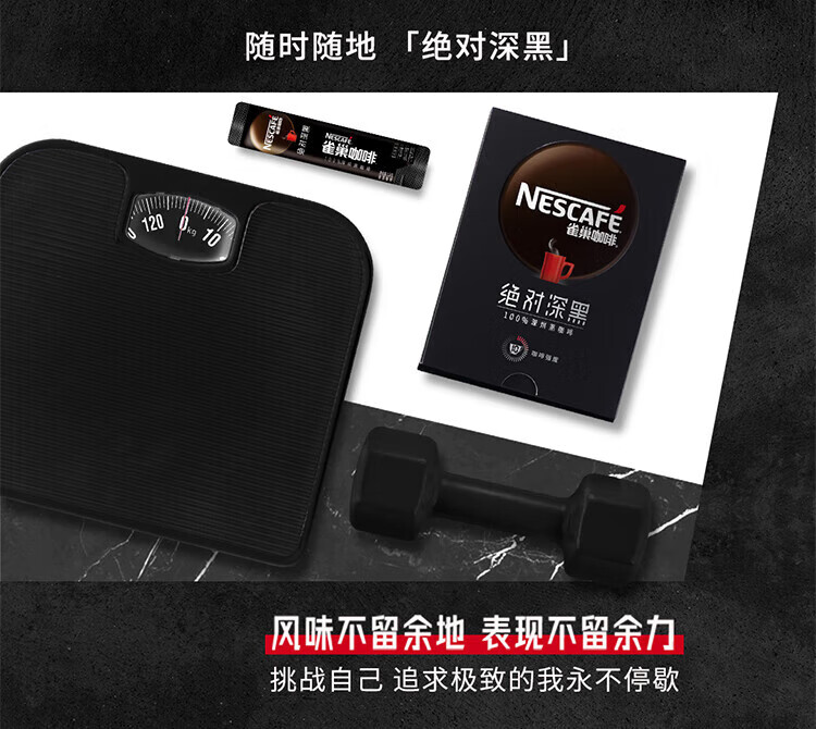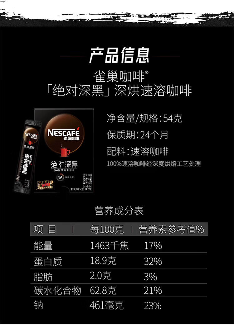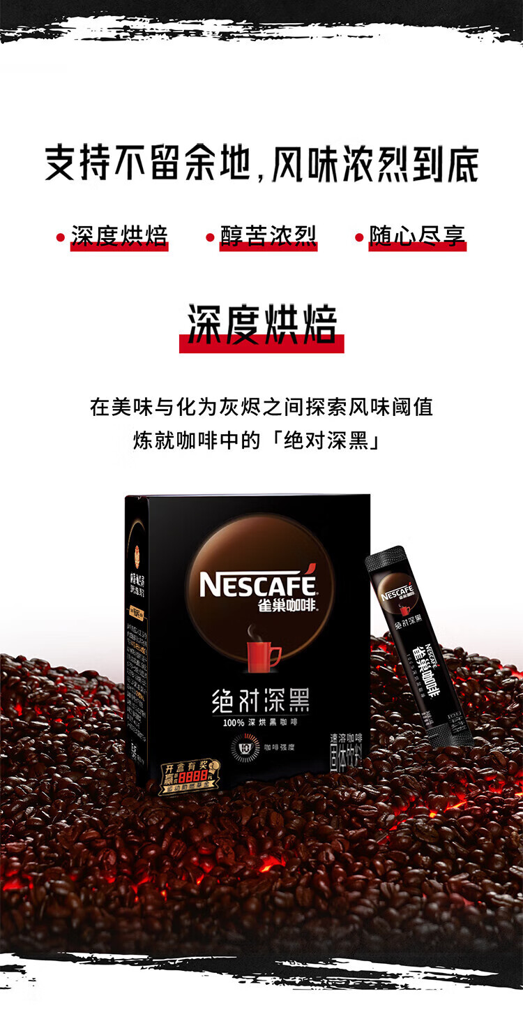 雀巢咖啡绝对深黑100%深烘速 速溶咖啡 黑咖啡 1.8g*8条/盒