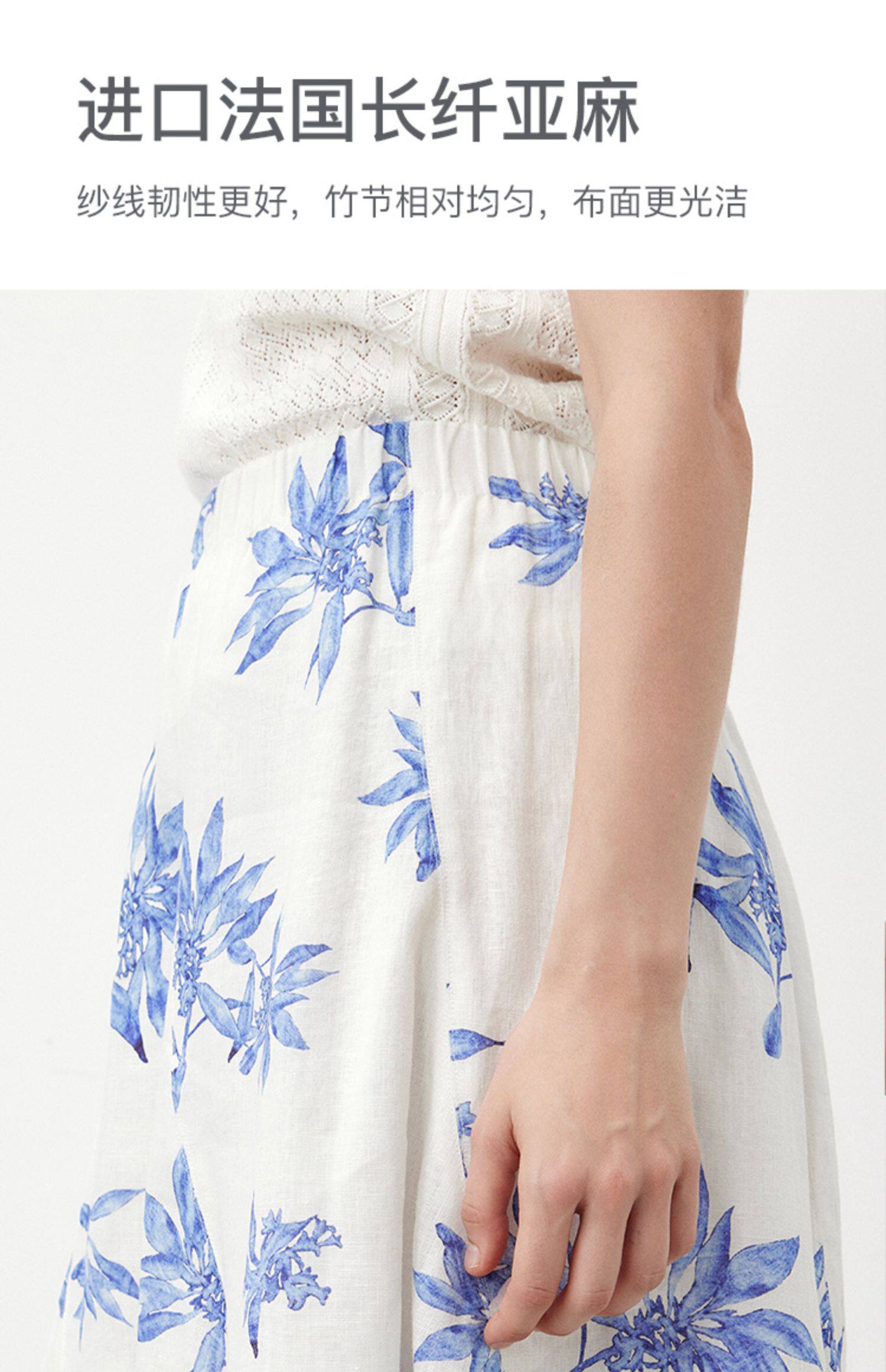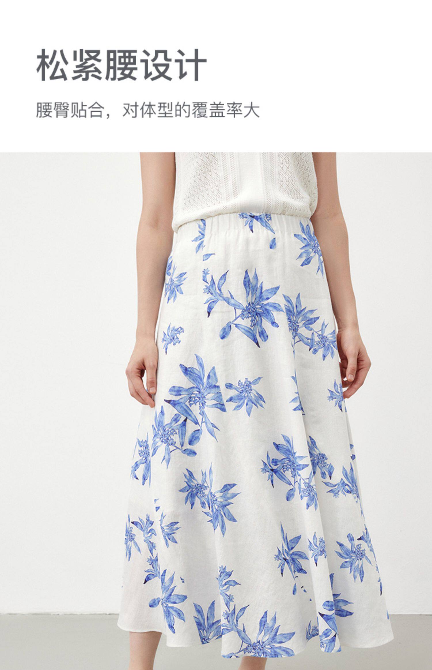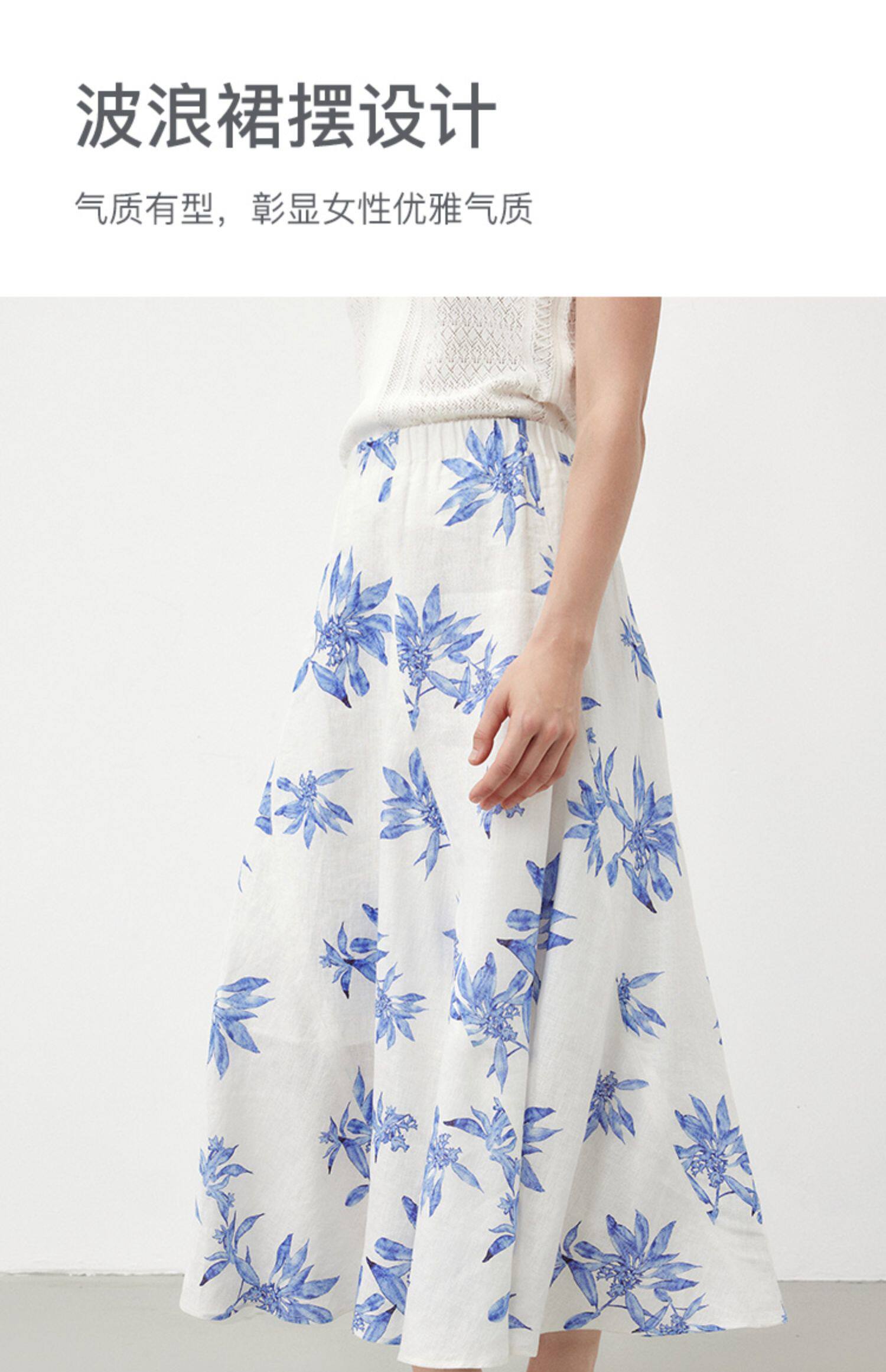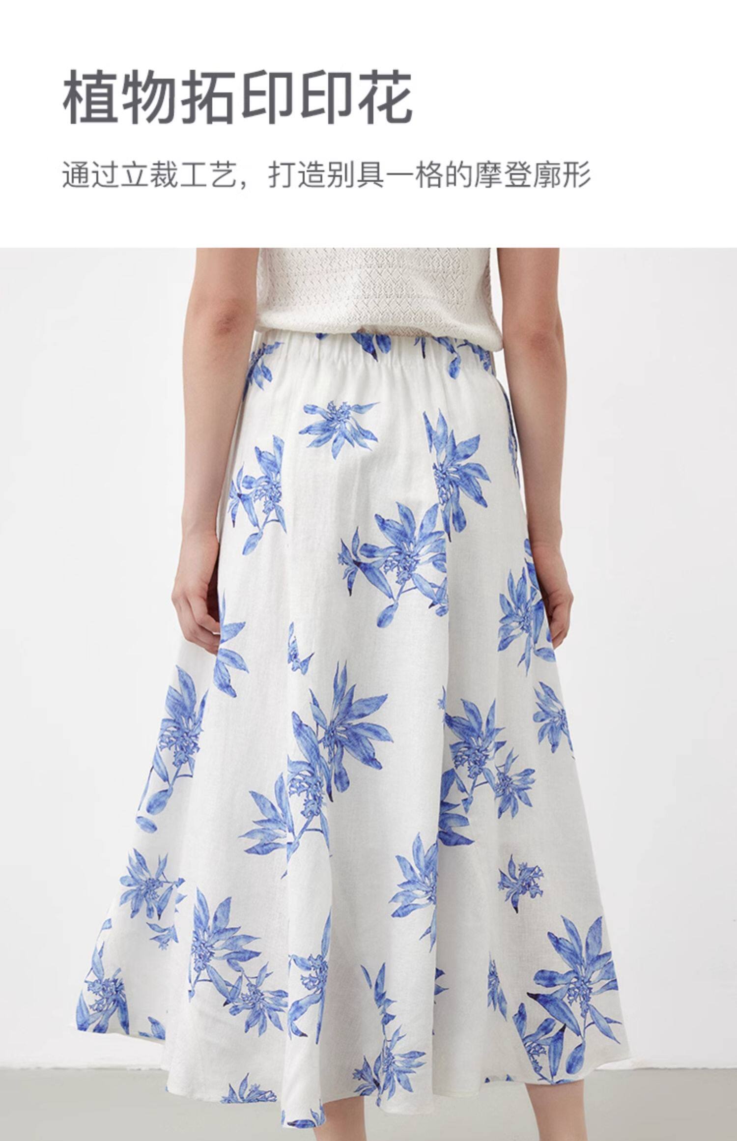 Marc O'Polo夏季新款植物印花天然亚麻舒适半身裙女长半裙