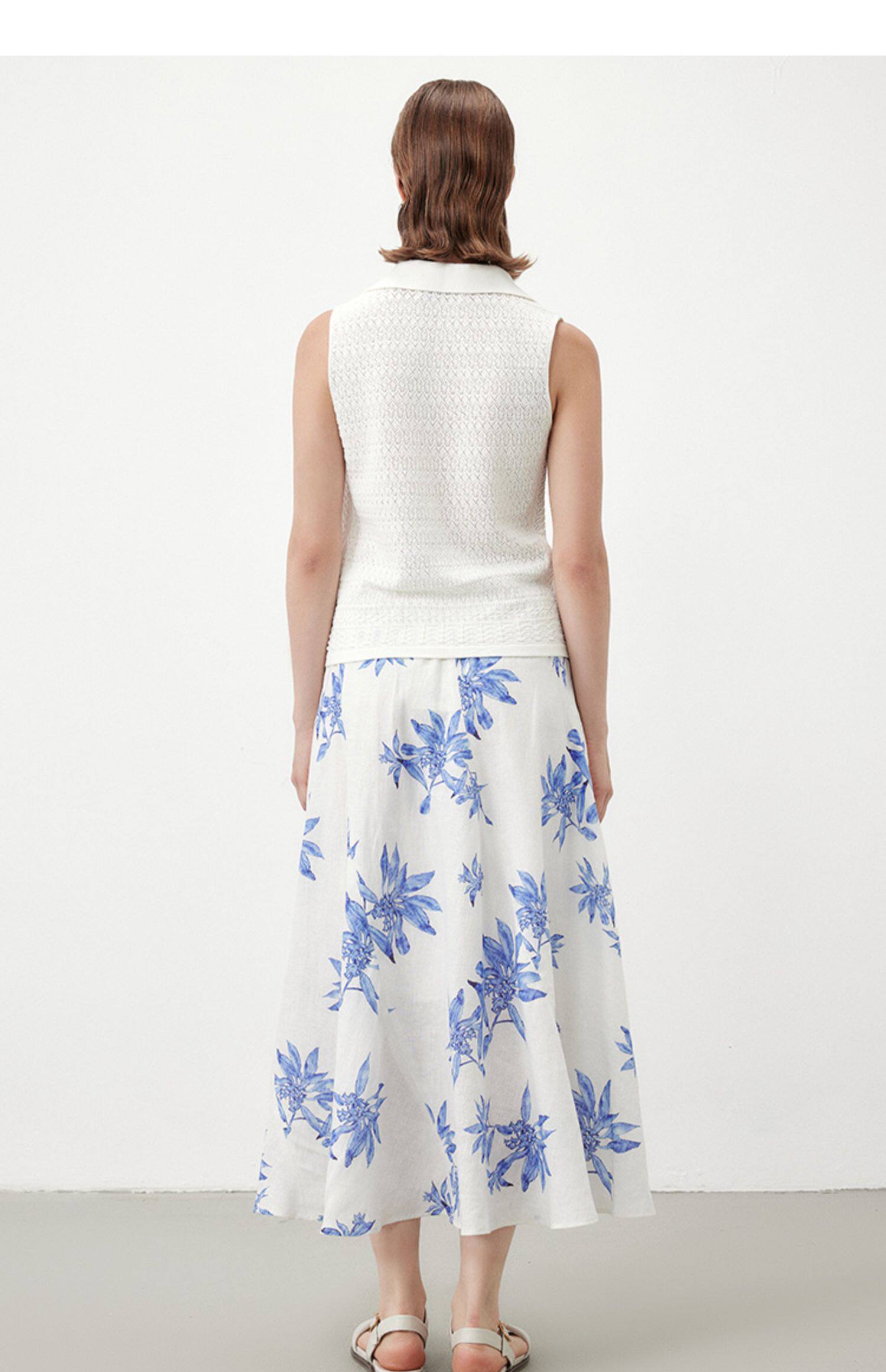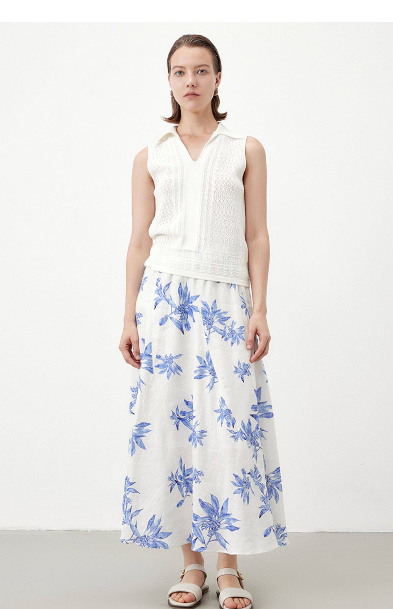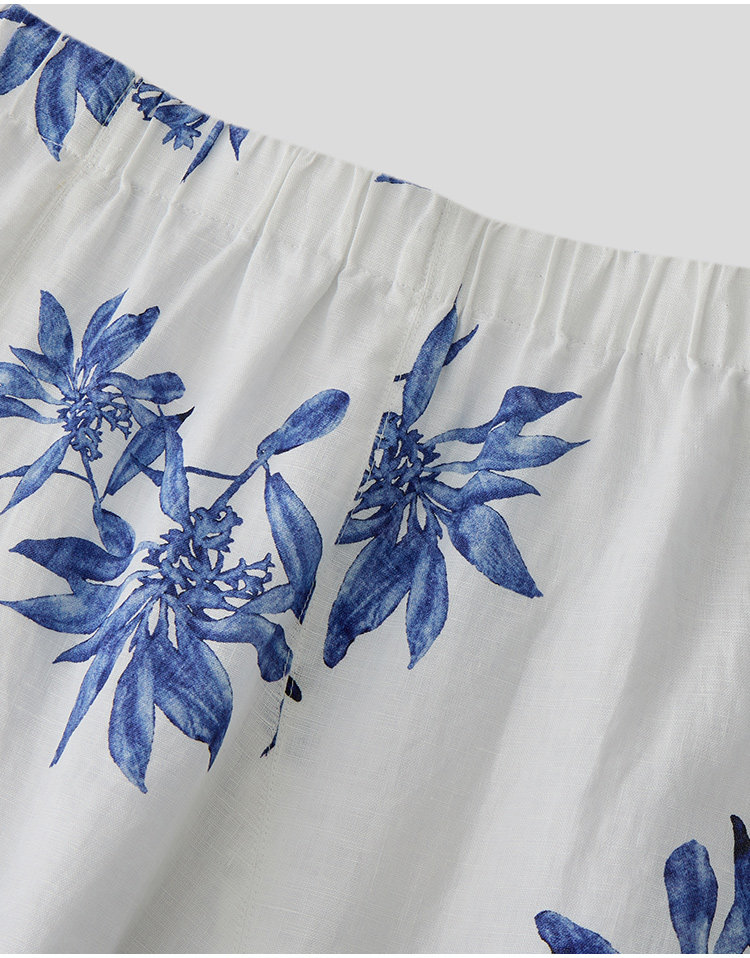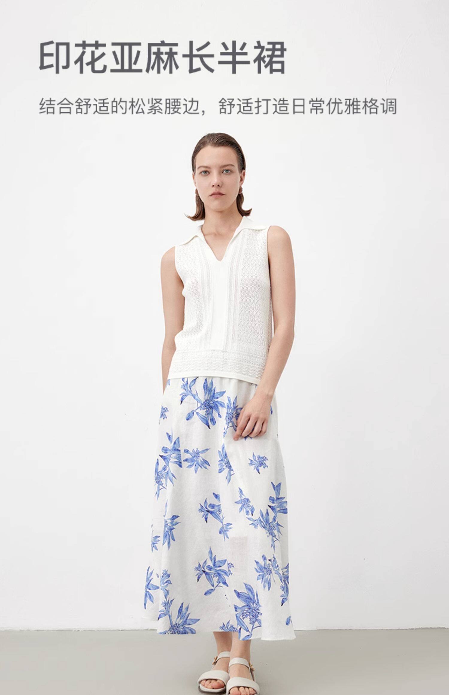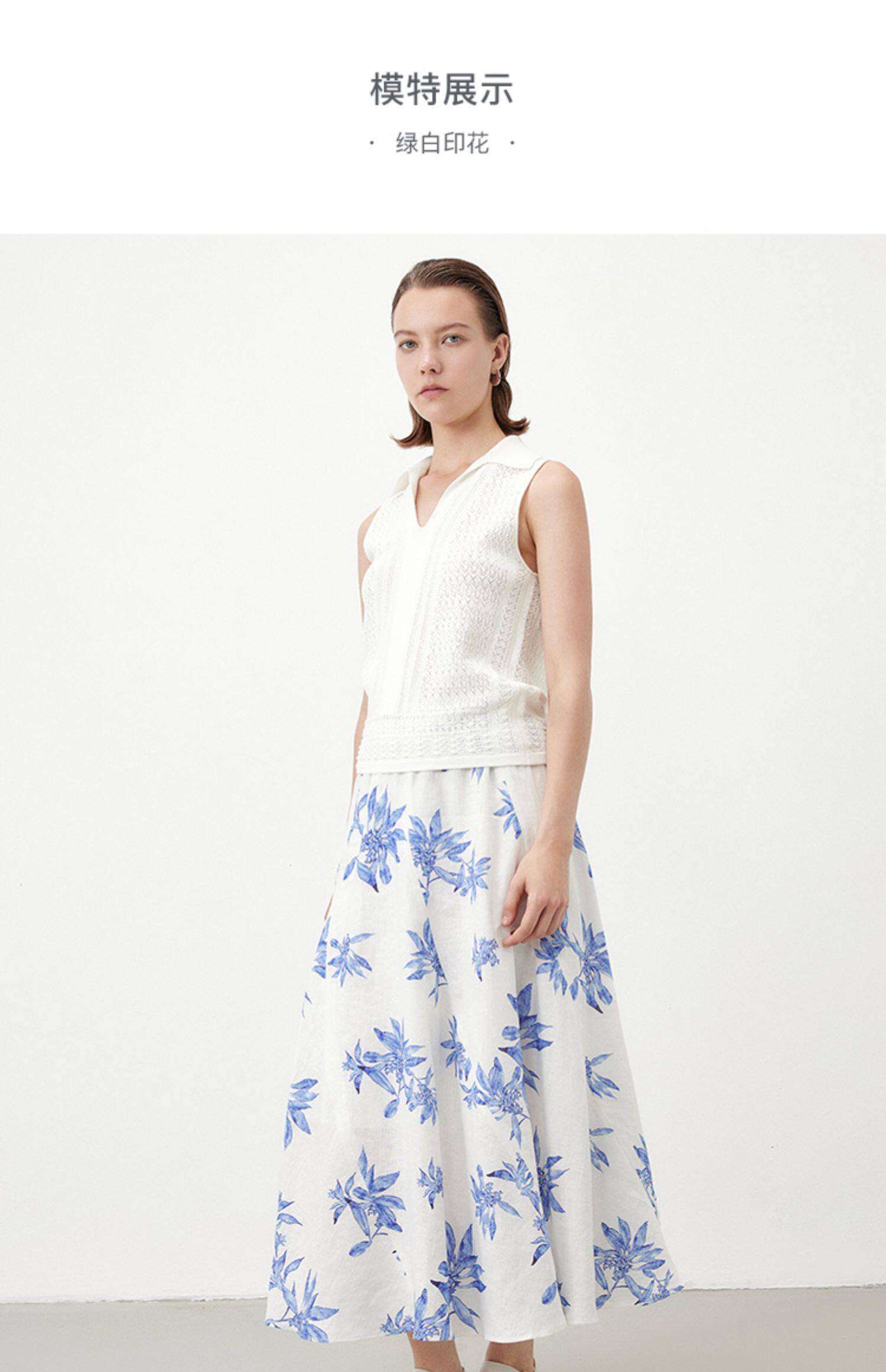 Marc O'Polo夏季新款植物印花天然亚麻舒适半身裙女长半裙