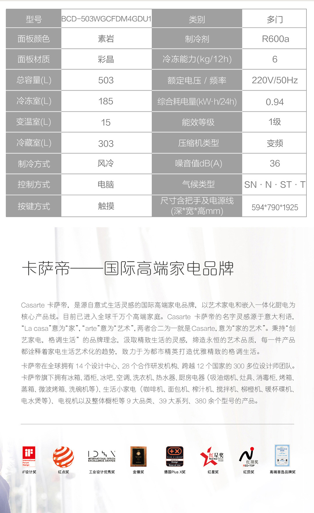卡萨帝(Casarte)冰箱 BCD-503WGCFDM4GDU1