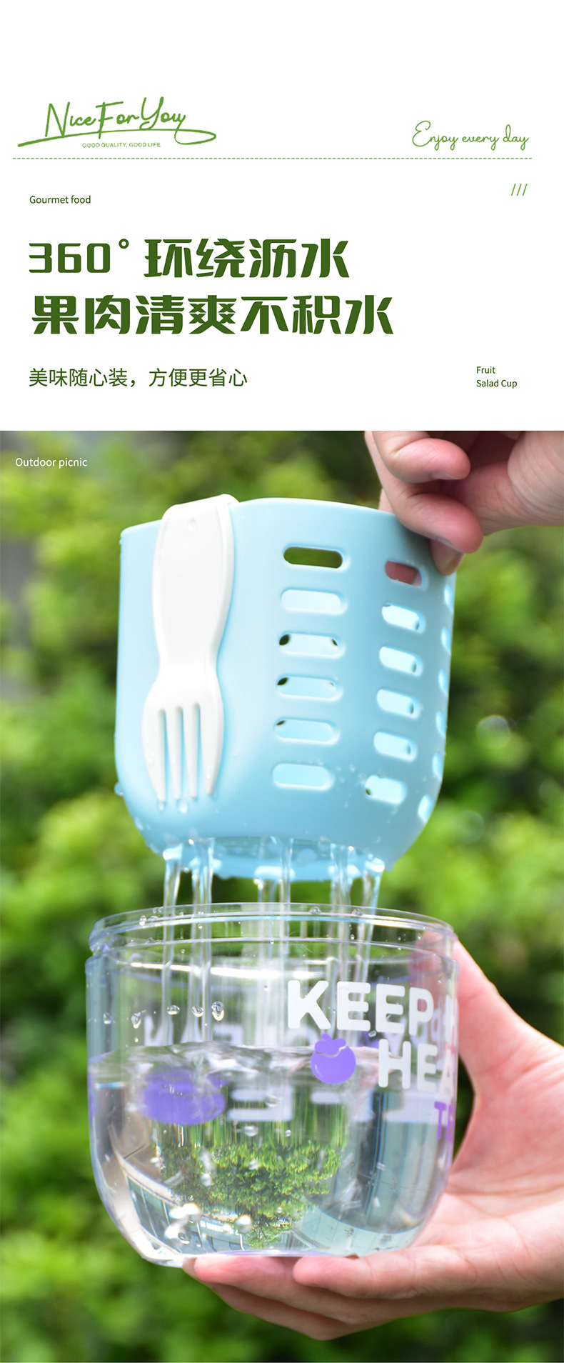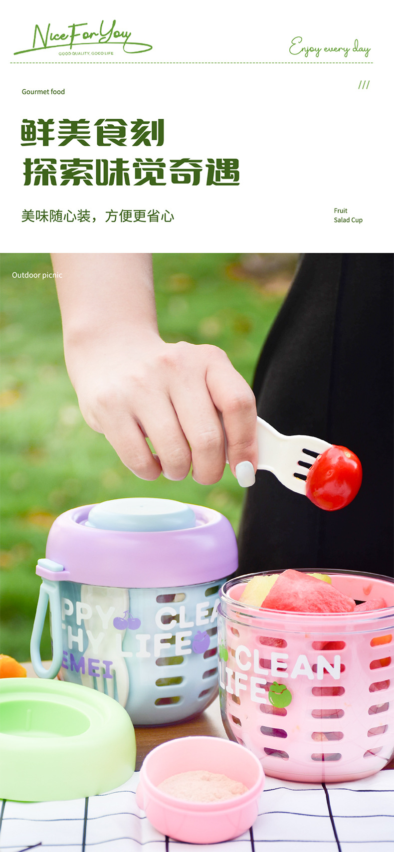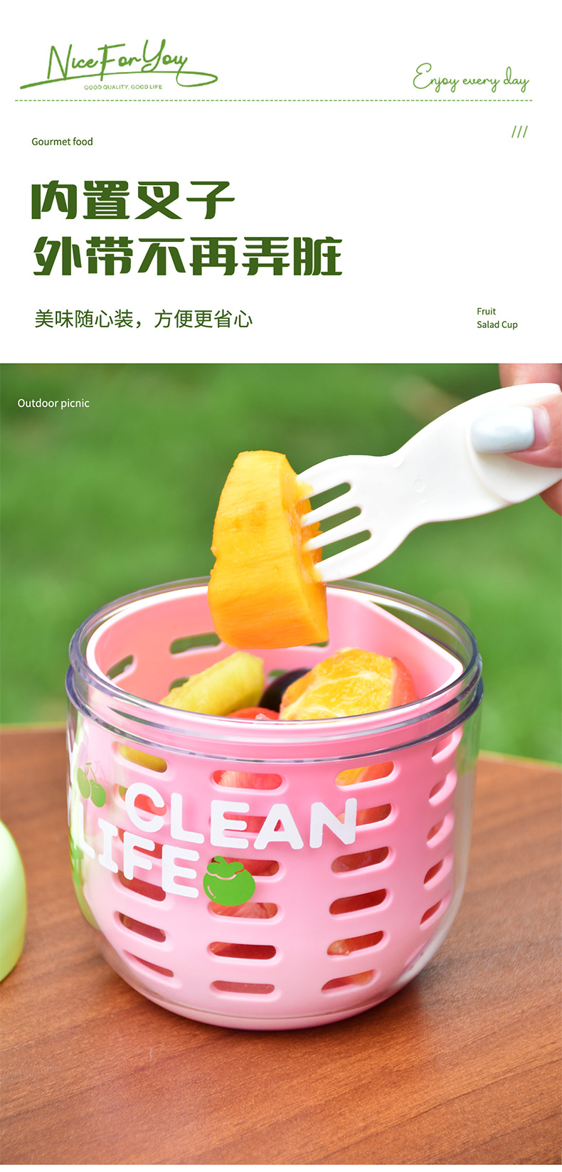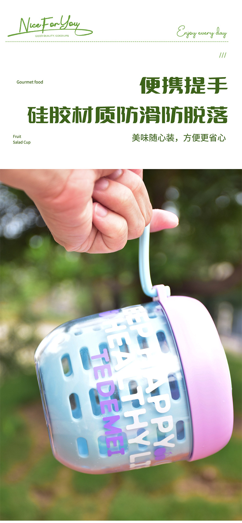 【易清洗!加厚材质】ins便携式水果杯随行水果沙拉杯户外沙拉杯露营饭盒水杯手提上班。xb
