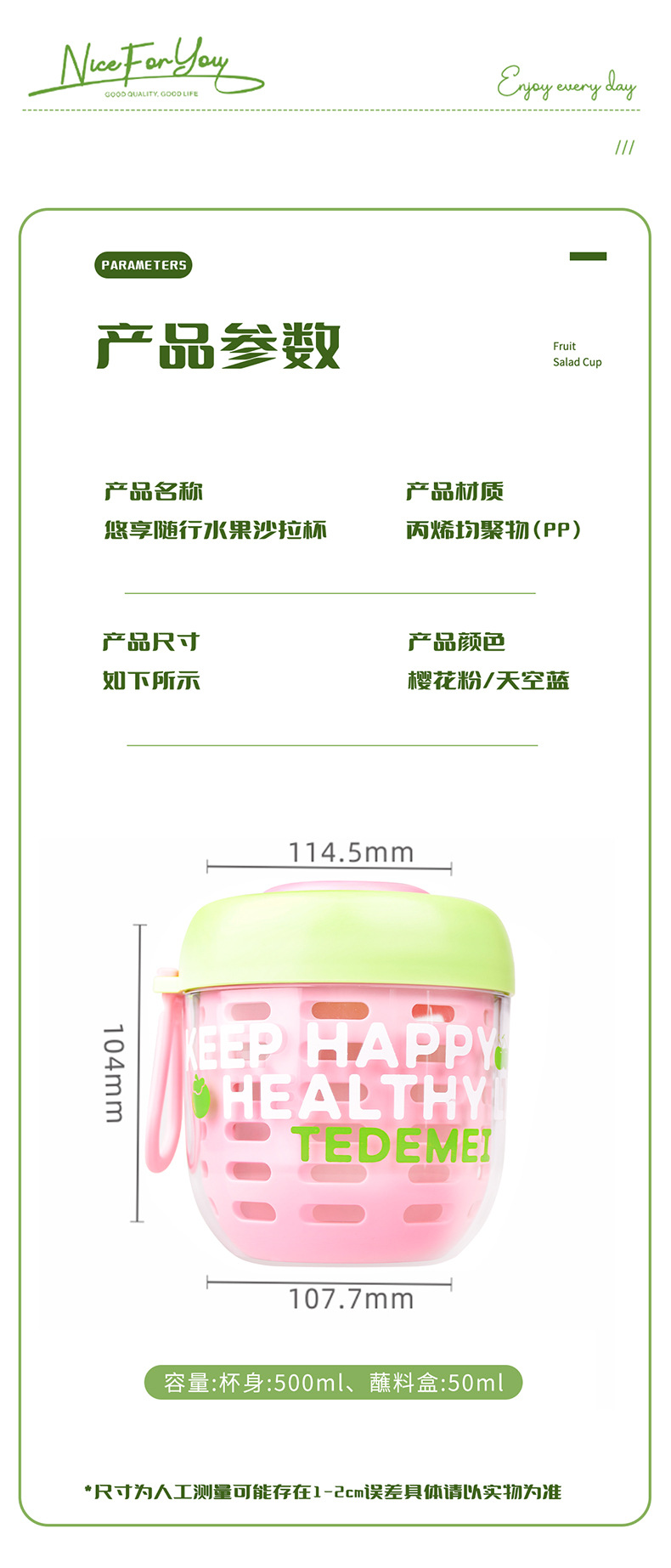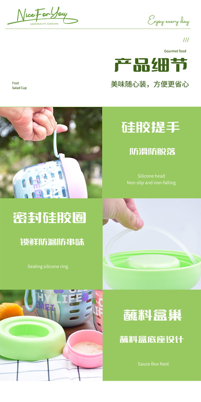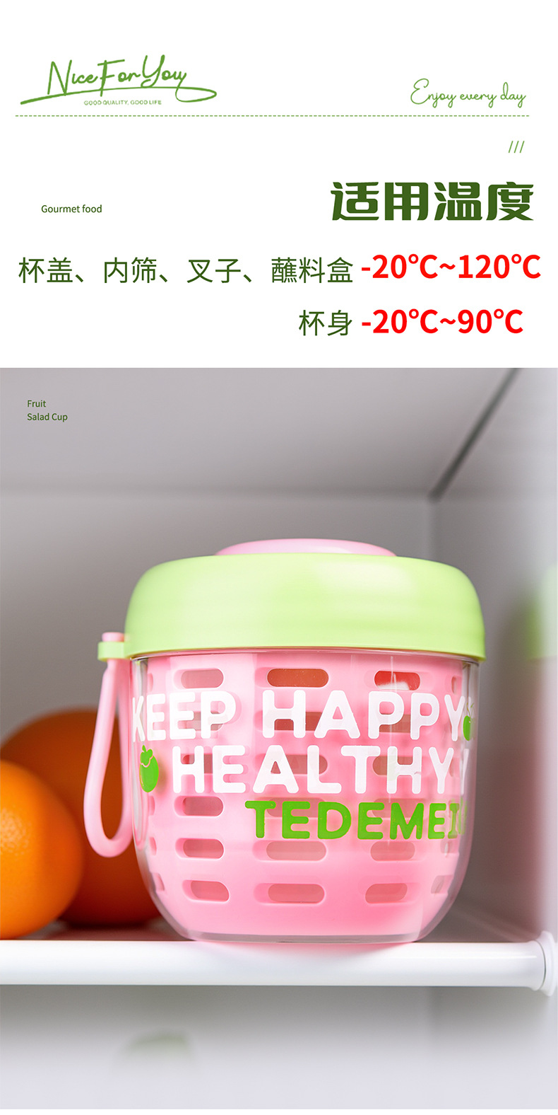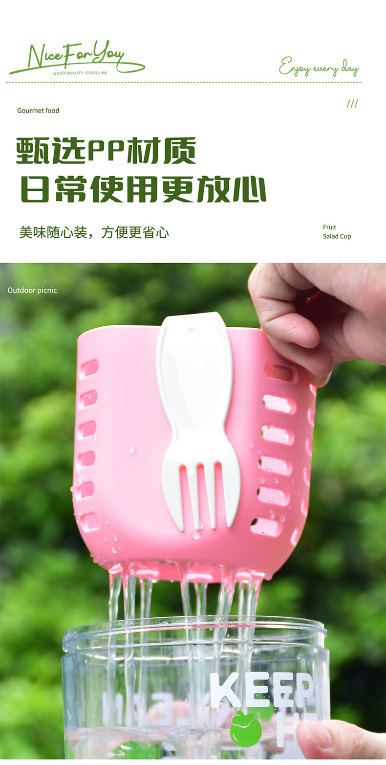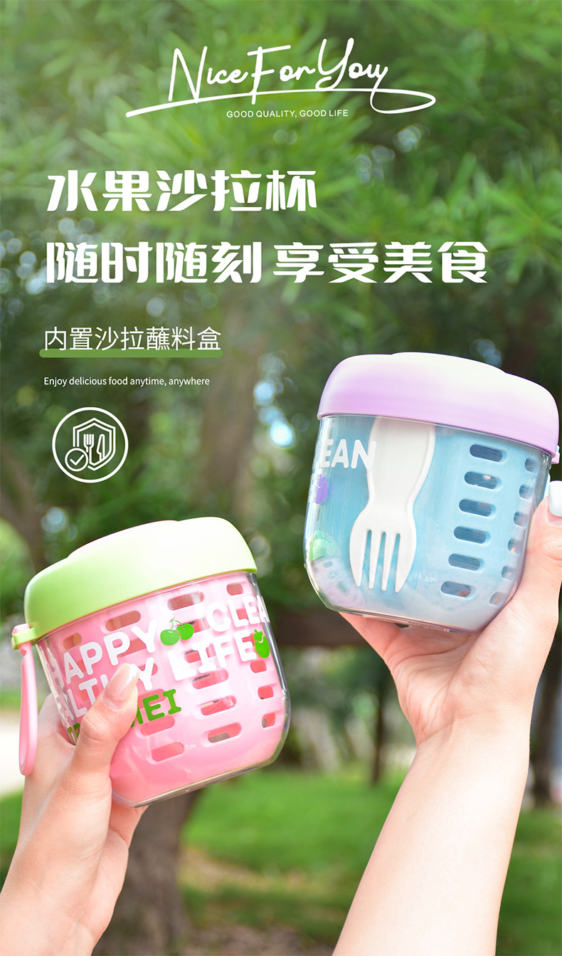 【易清洗!加厚材质】ins便携式水果杯随行水果沙拉杯户外沙拉杯露营饭盒水杯手提上班。xb