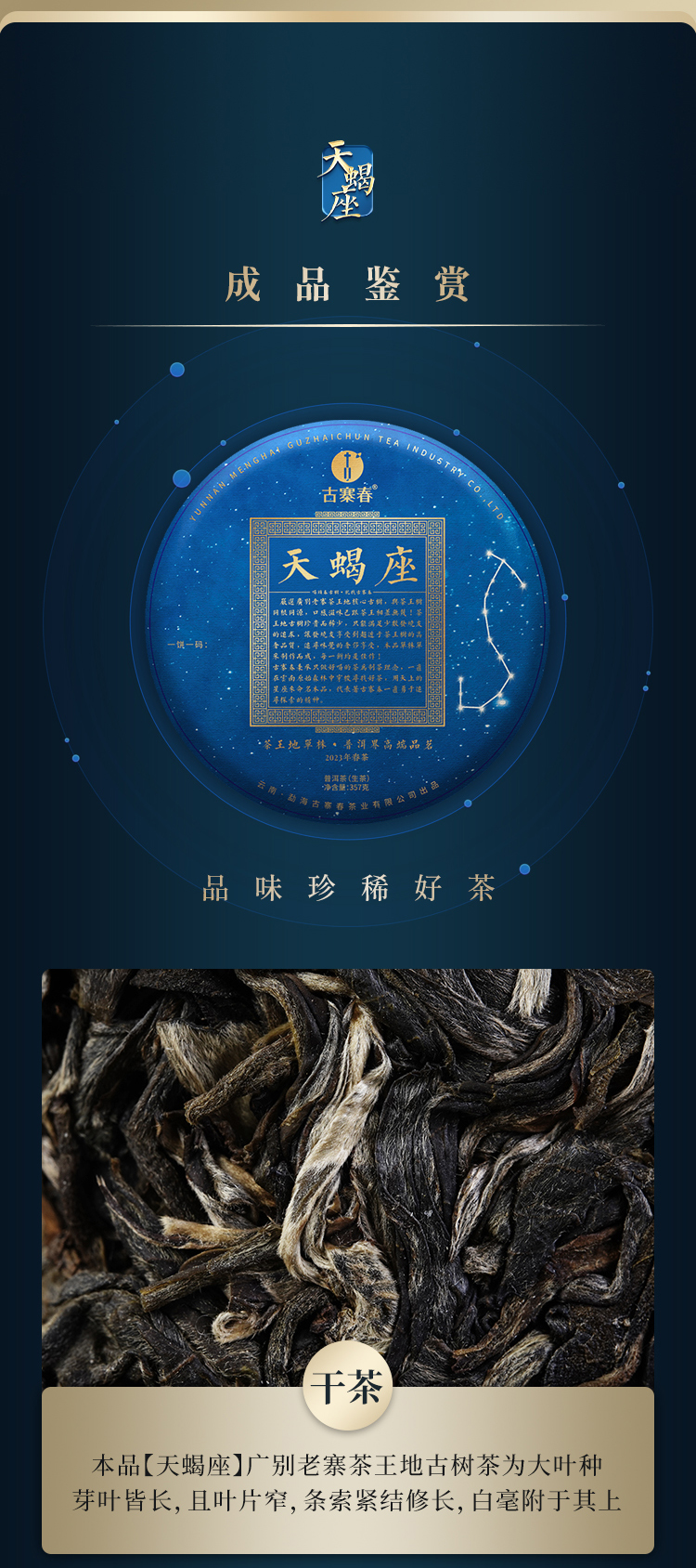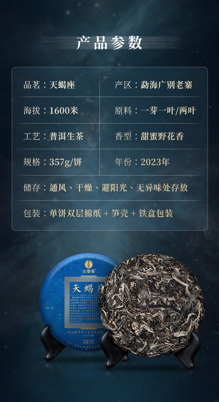 【不足20饼】【天蝎座】2023年勐海茶区广别老寨茶王地片区定株定采蕞接近茶王树的口感传统古法制茶匠心制作