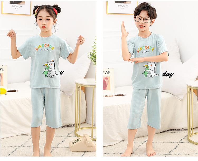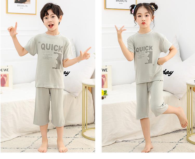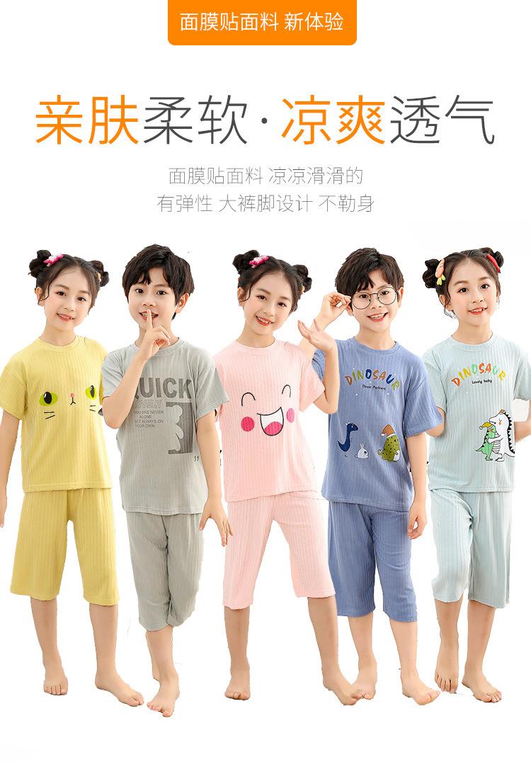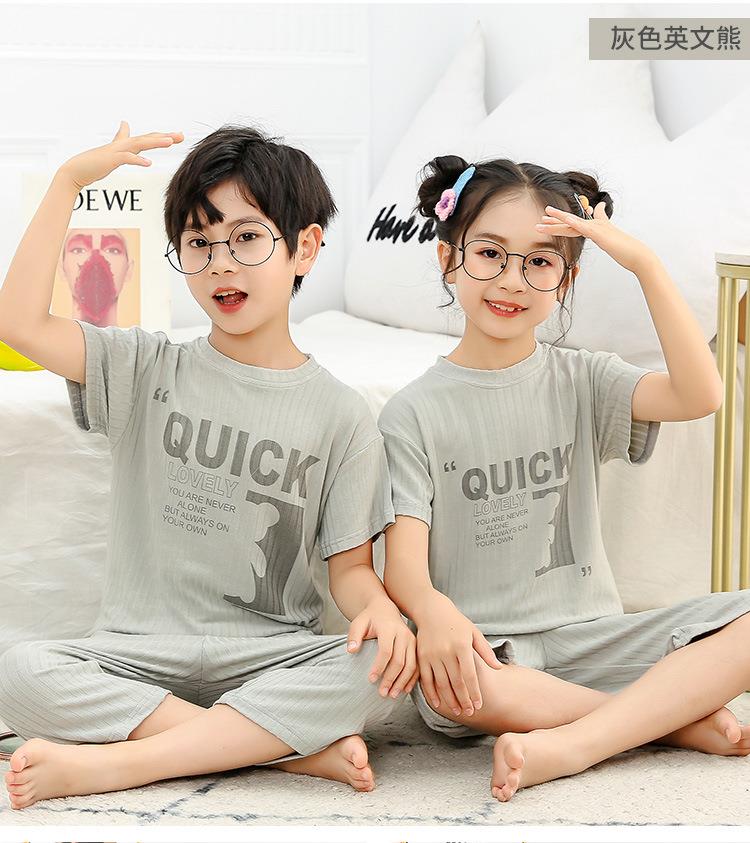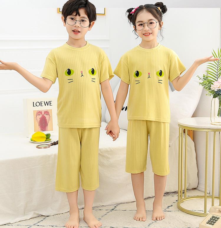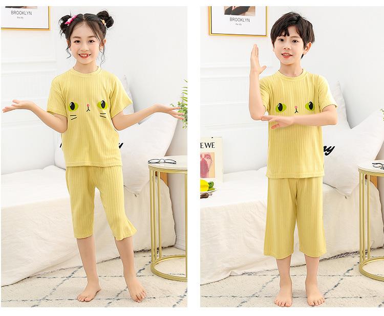 【两件套】韩版中大童短袖男女童春夏卡通学生套装儿童七分裤宽松