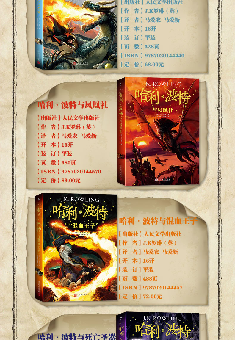 正版哈利波特书全套8册任选(哈利波特1魔法石已售空)