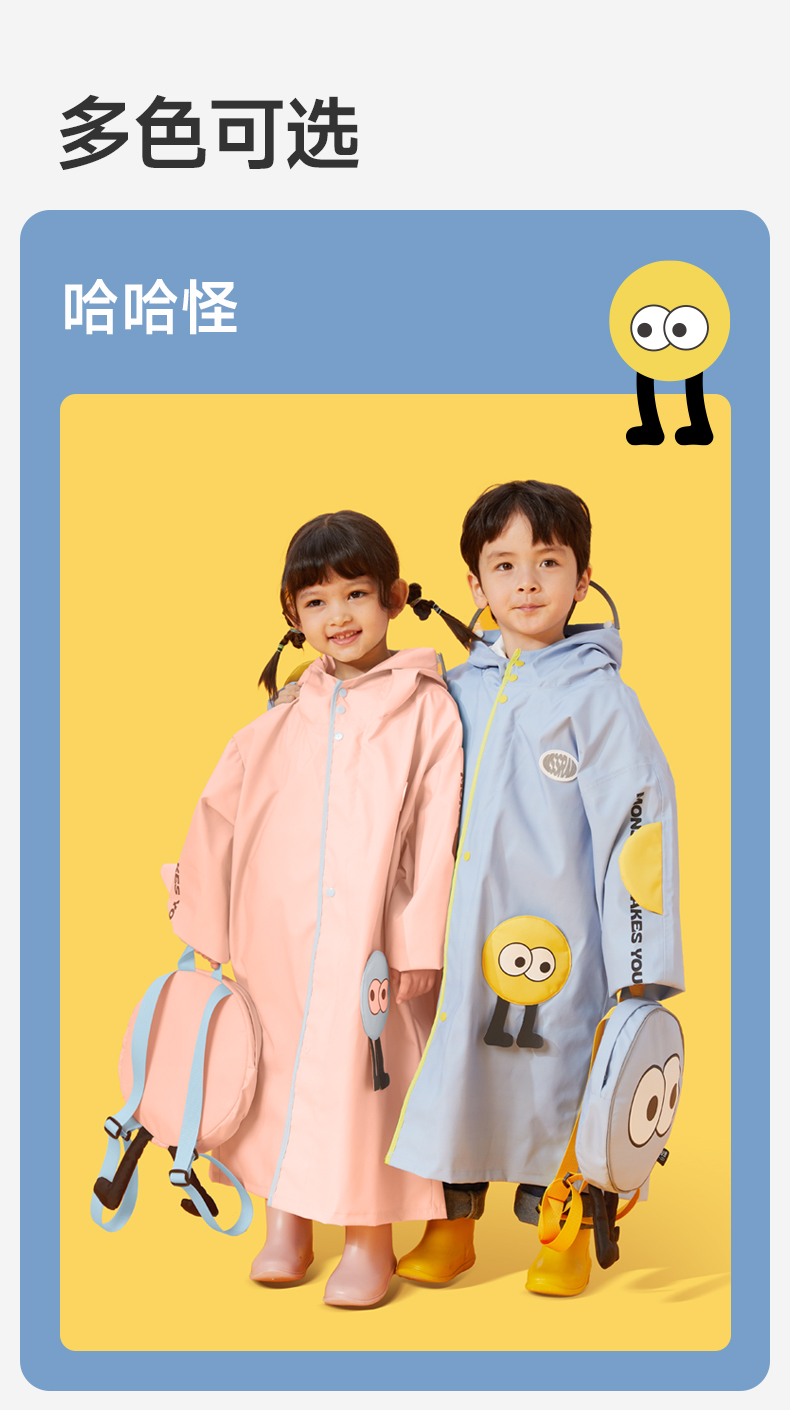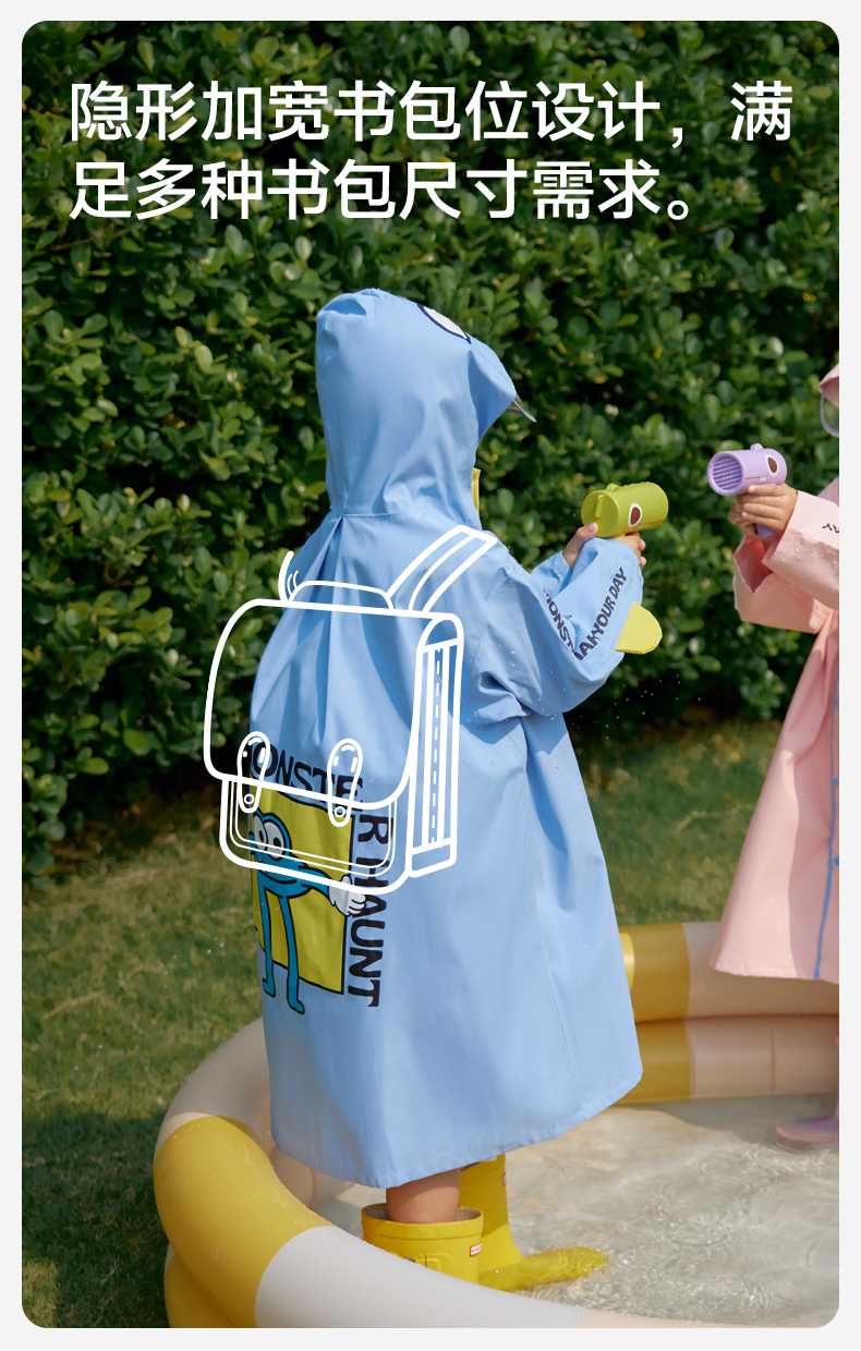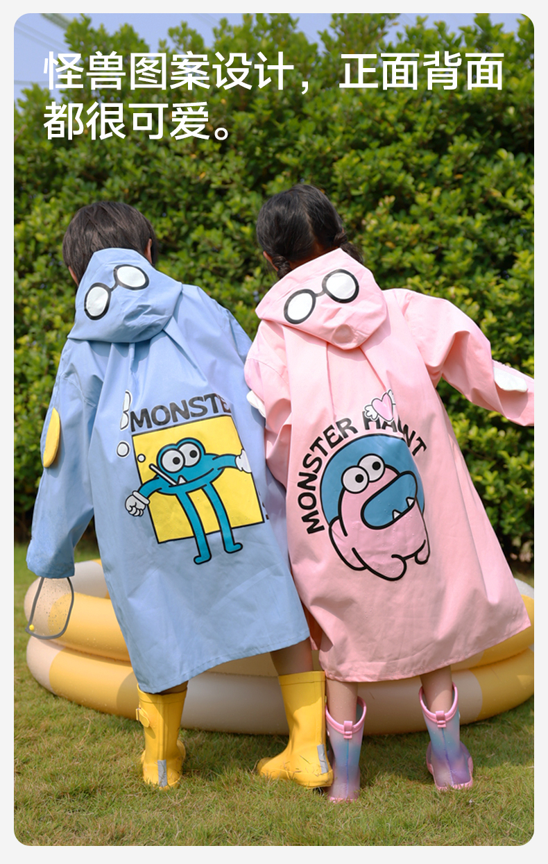 MISSRAIN觅雨卡通怪兽儿童雨衣男童女童带书包位小学生上学雨披