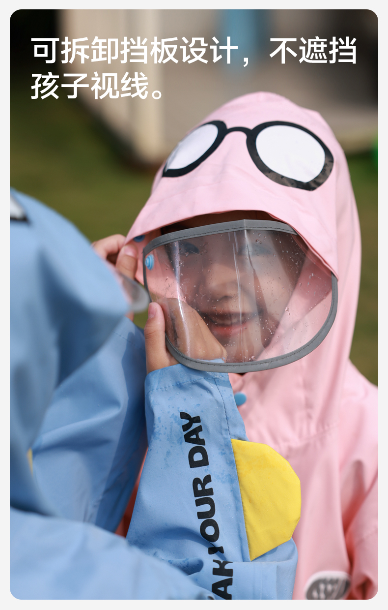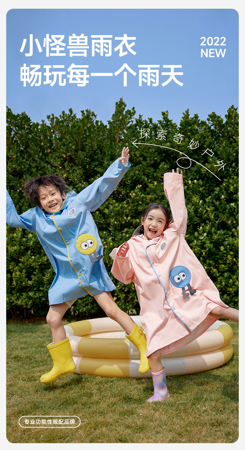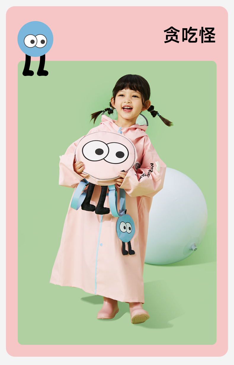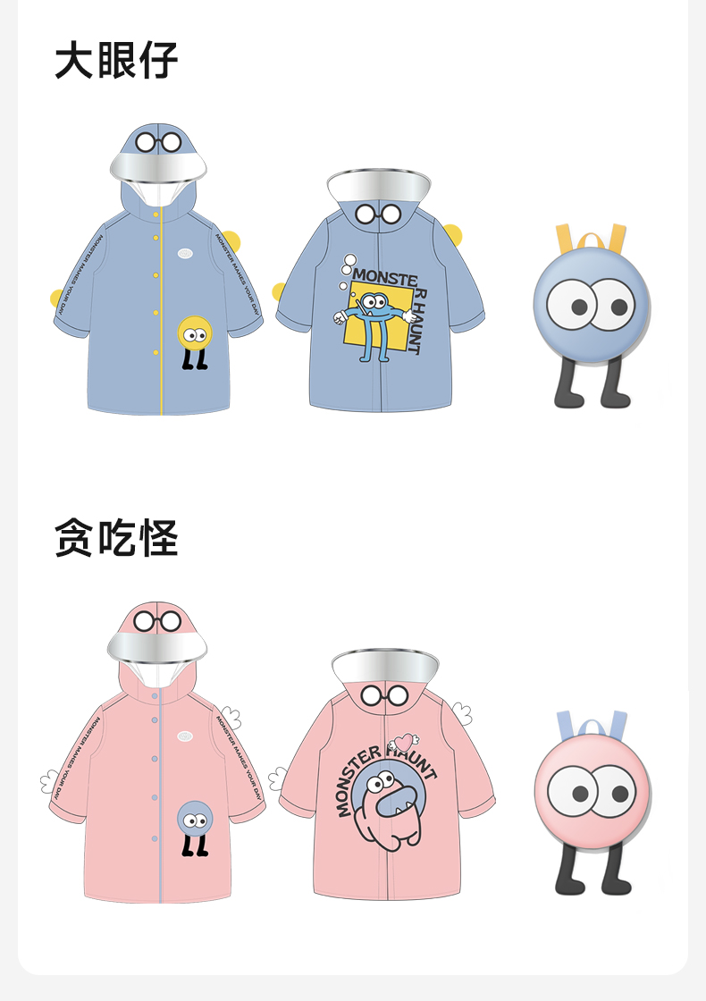MISSRAIN觅雨卡通怪兽儿童雨衣男童女童带书包位小学生上学雨披