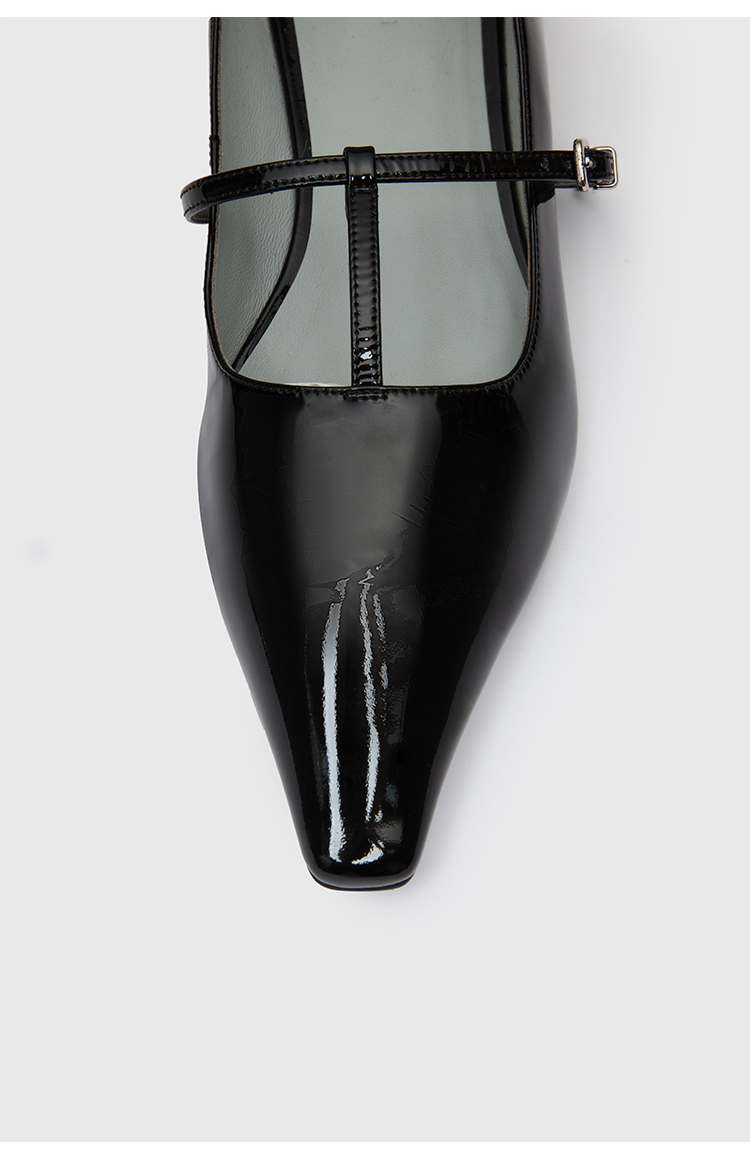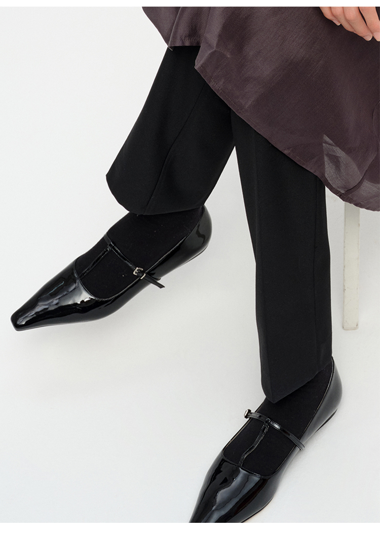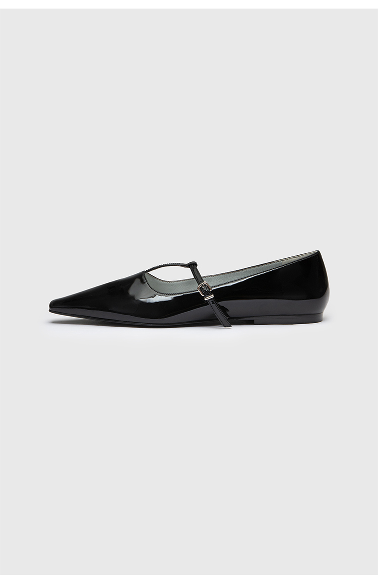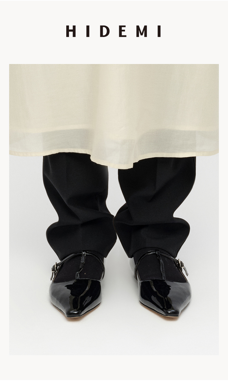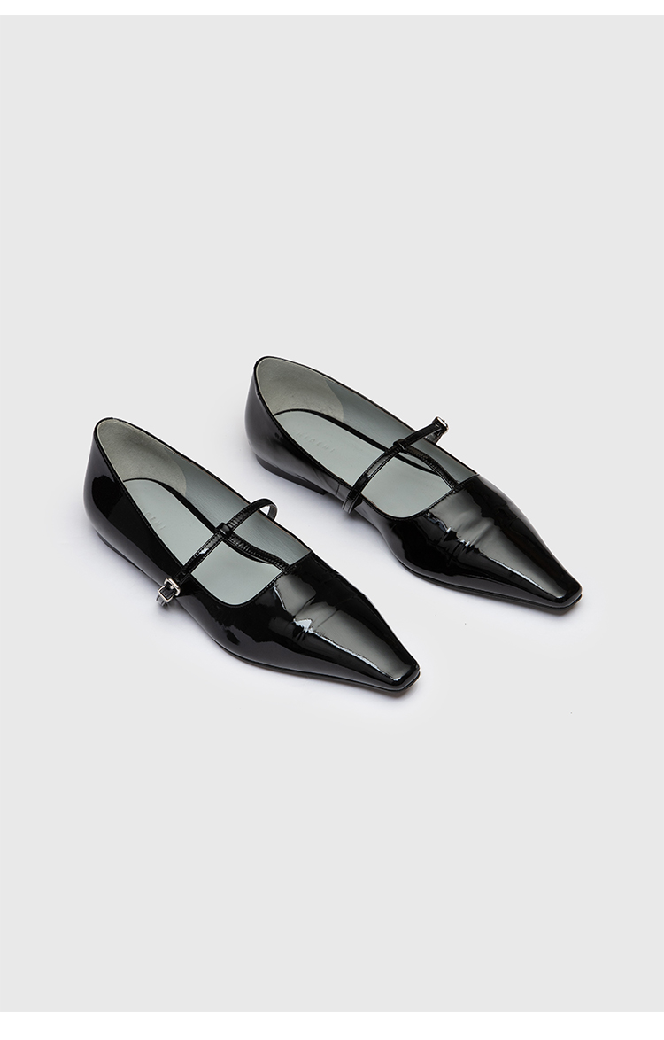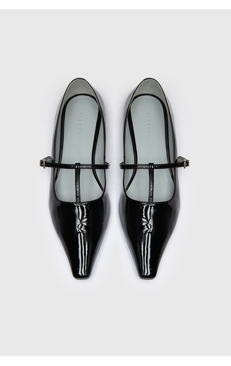 HIDEMI 进口牛漆皮细带玛丽珍尖头平底鞋