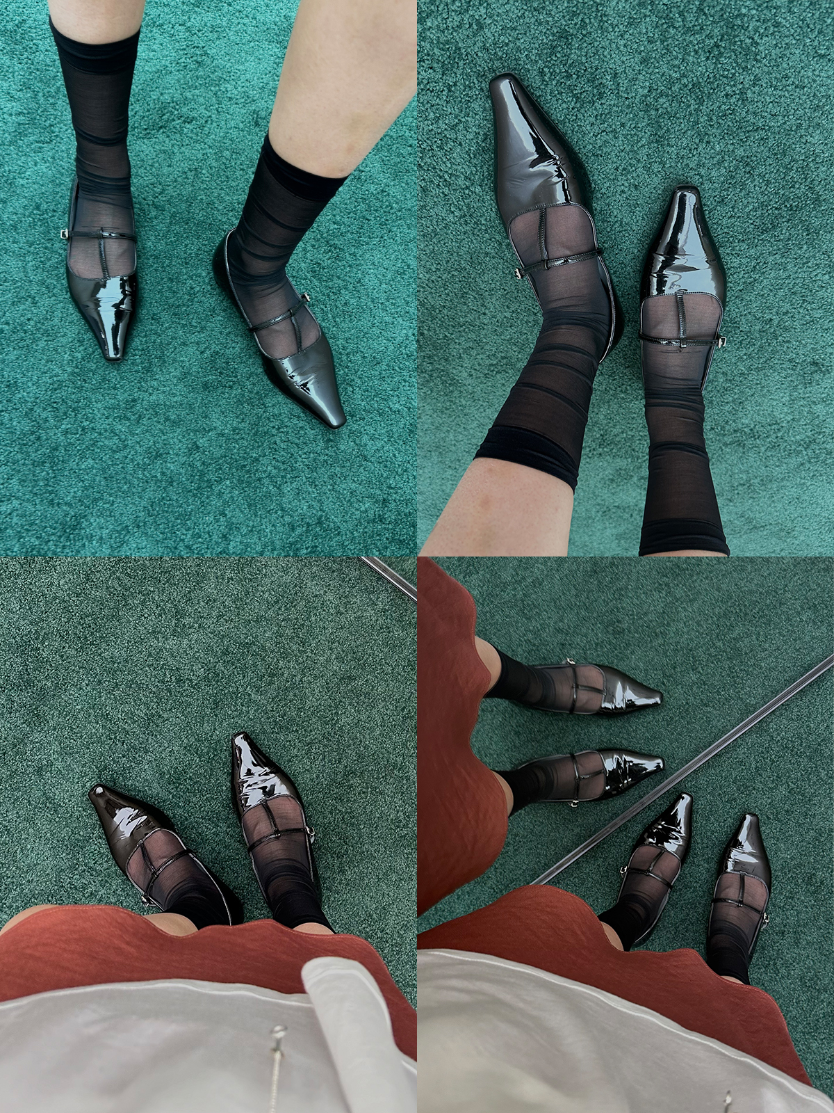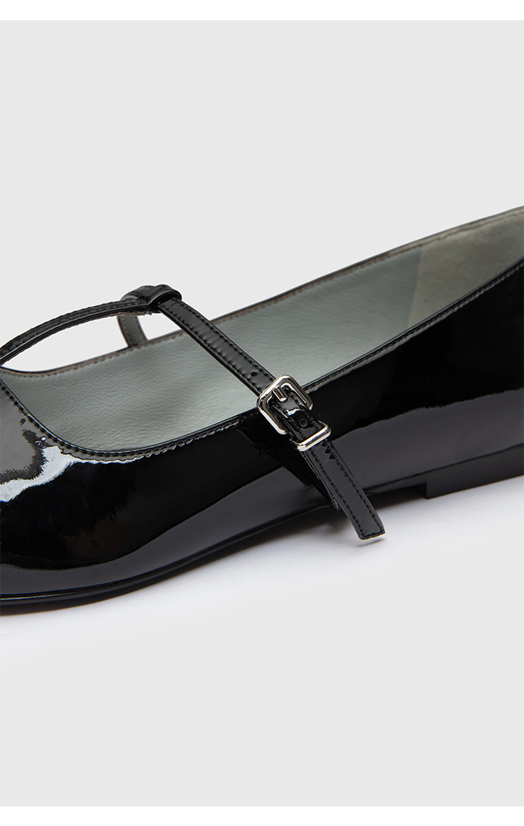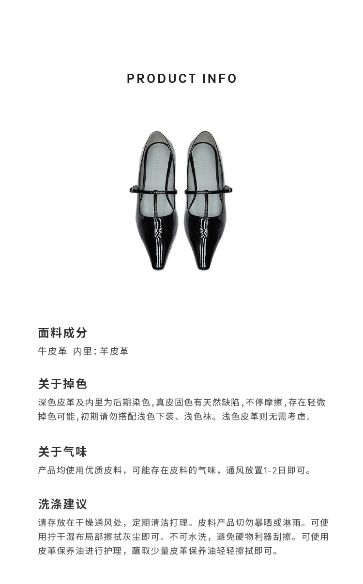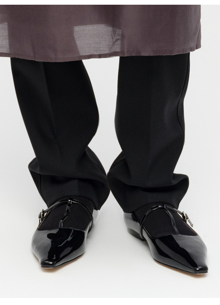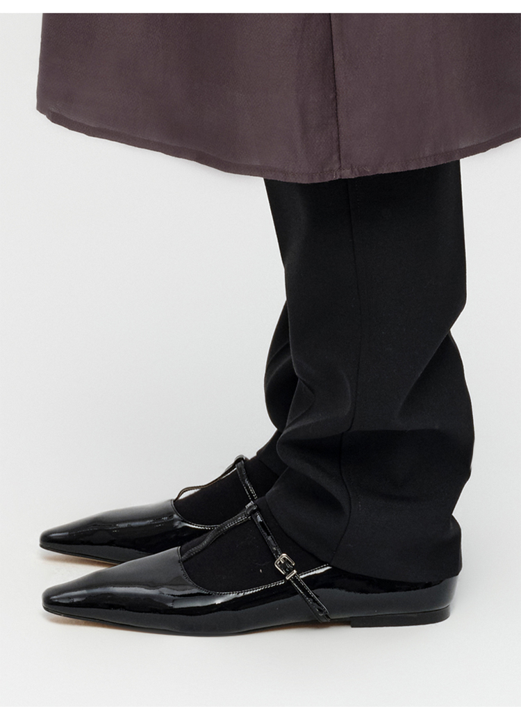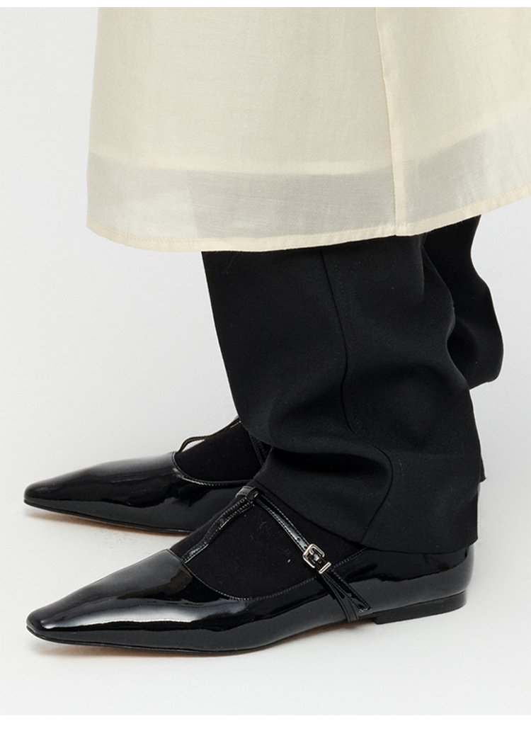 HIDEMI 进口牛漆皮细带玛丽珍尖头平底鞋