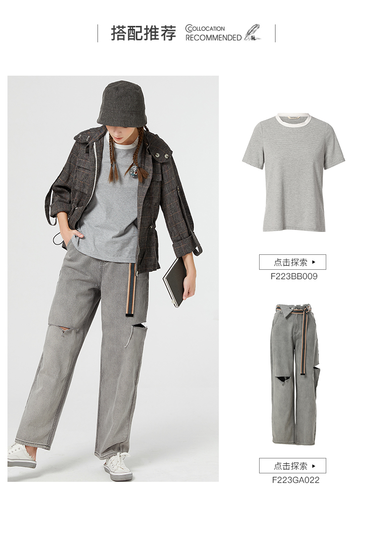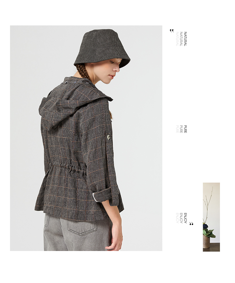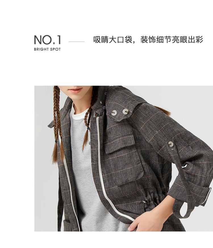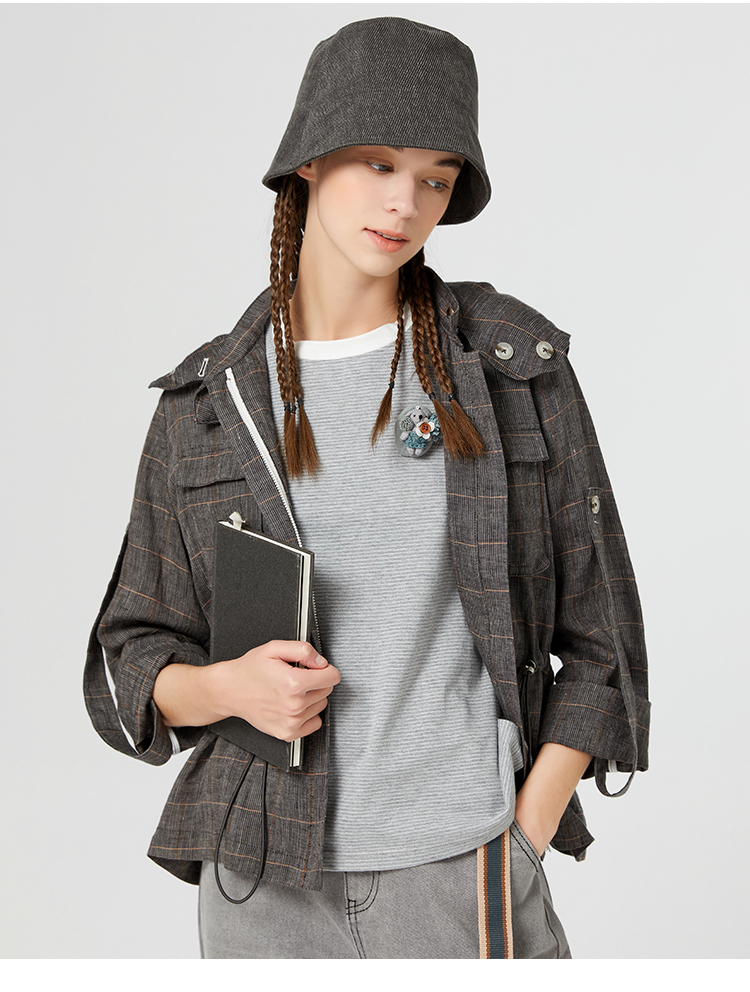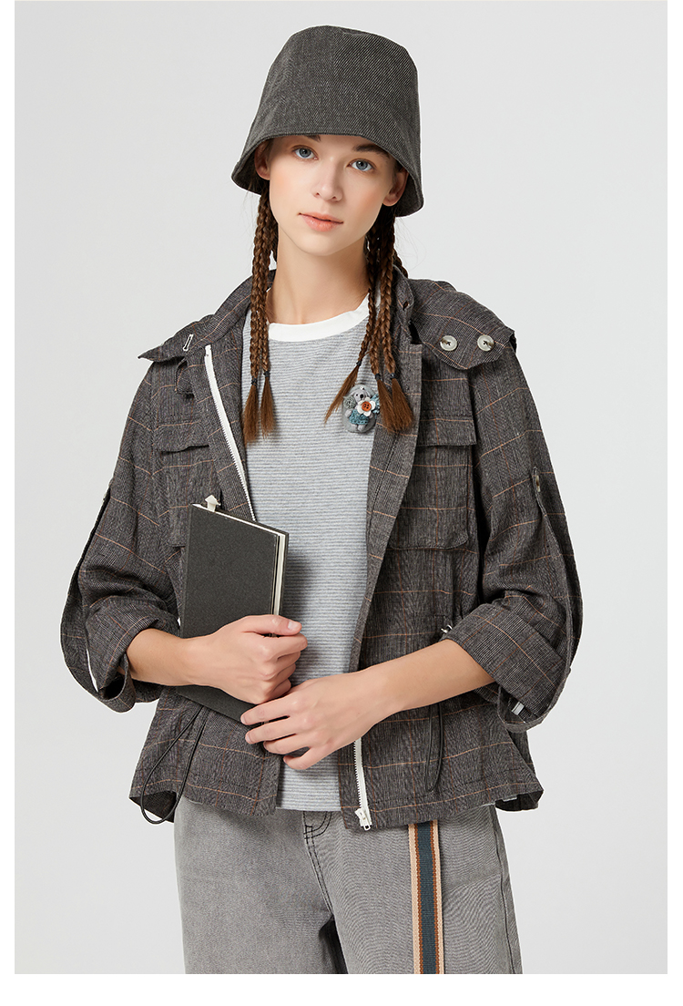 Famecoco范可儿复古夏季格子外套女新款工装夹克高级范短款F223AB009
