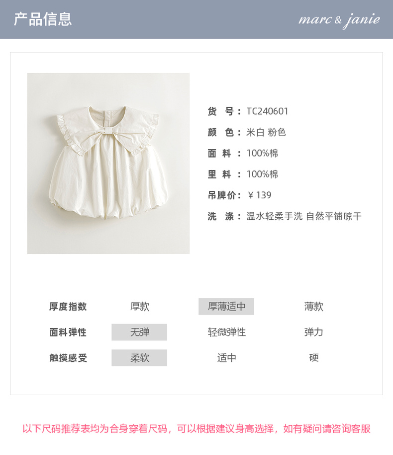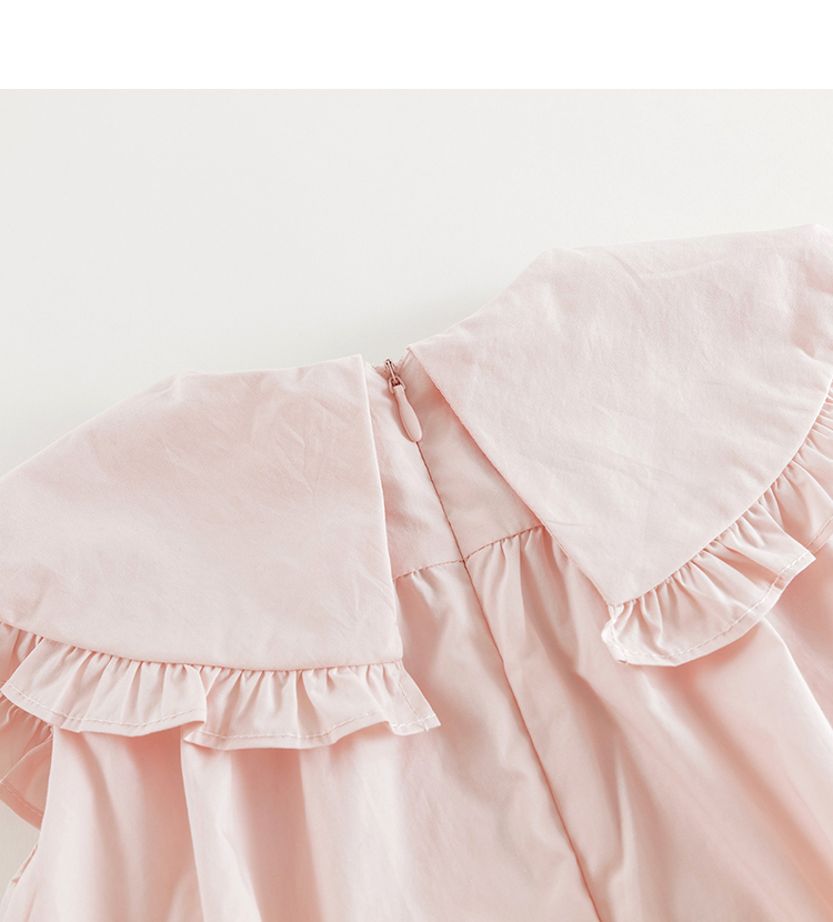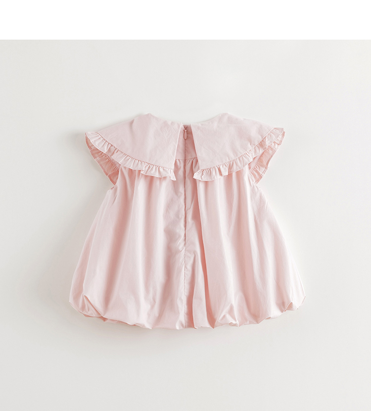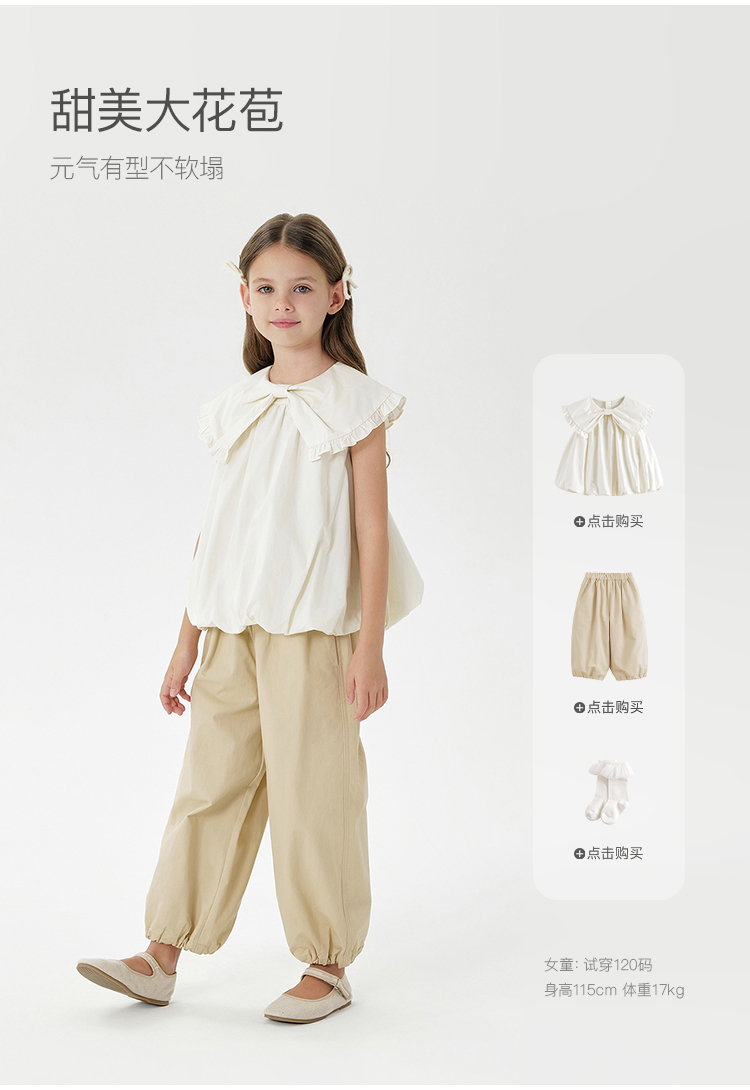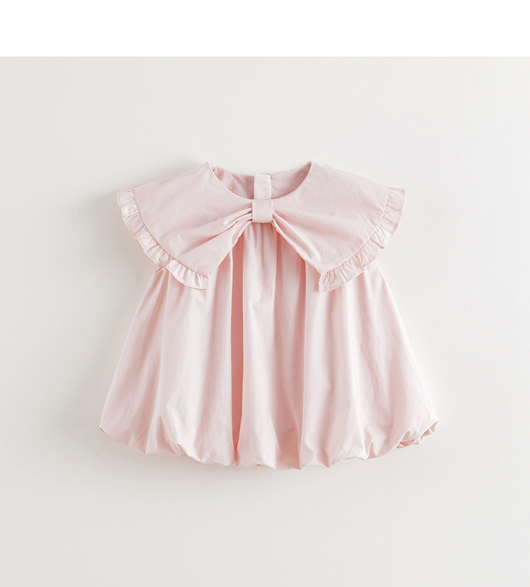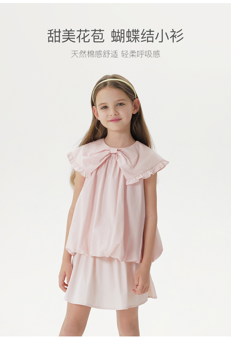 马克珍妮女童蝴蝶结花边领花苞衬衫儿童衬衣2025年夏装新款550333