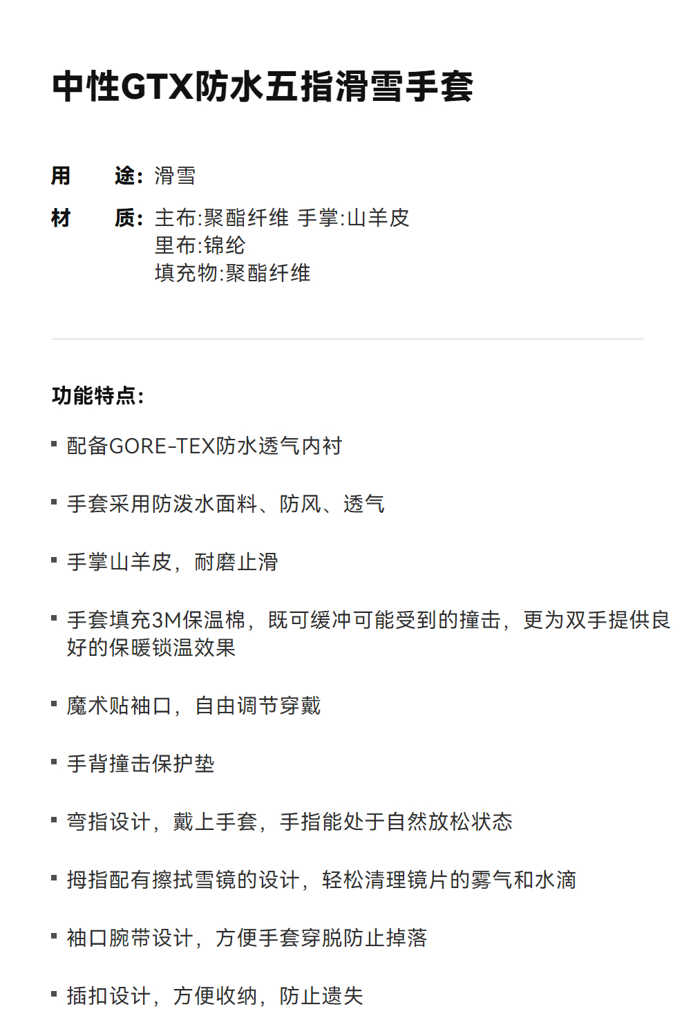 KAILAS凯乐石 户外运动 中性GTX防水五指滑雪手套 KM2462001【Z】