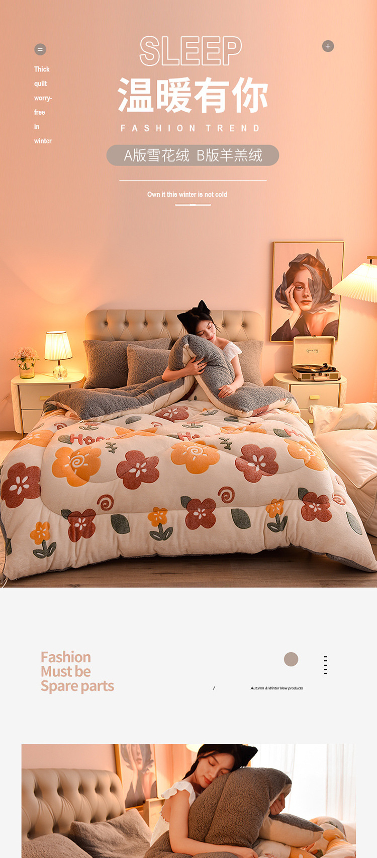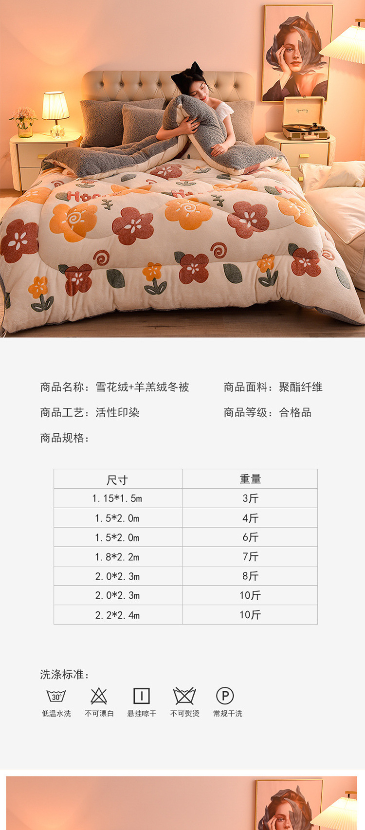 【床上用品】新款雪花绒冬被加厚羊羔绒冬被印花保暖单双人