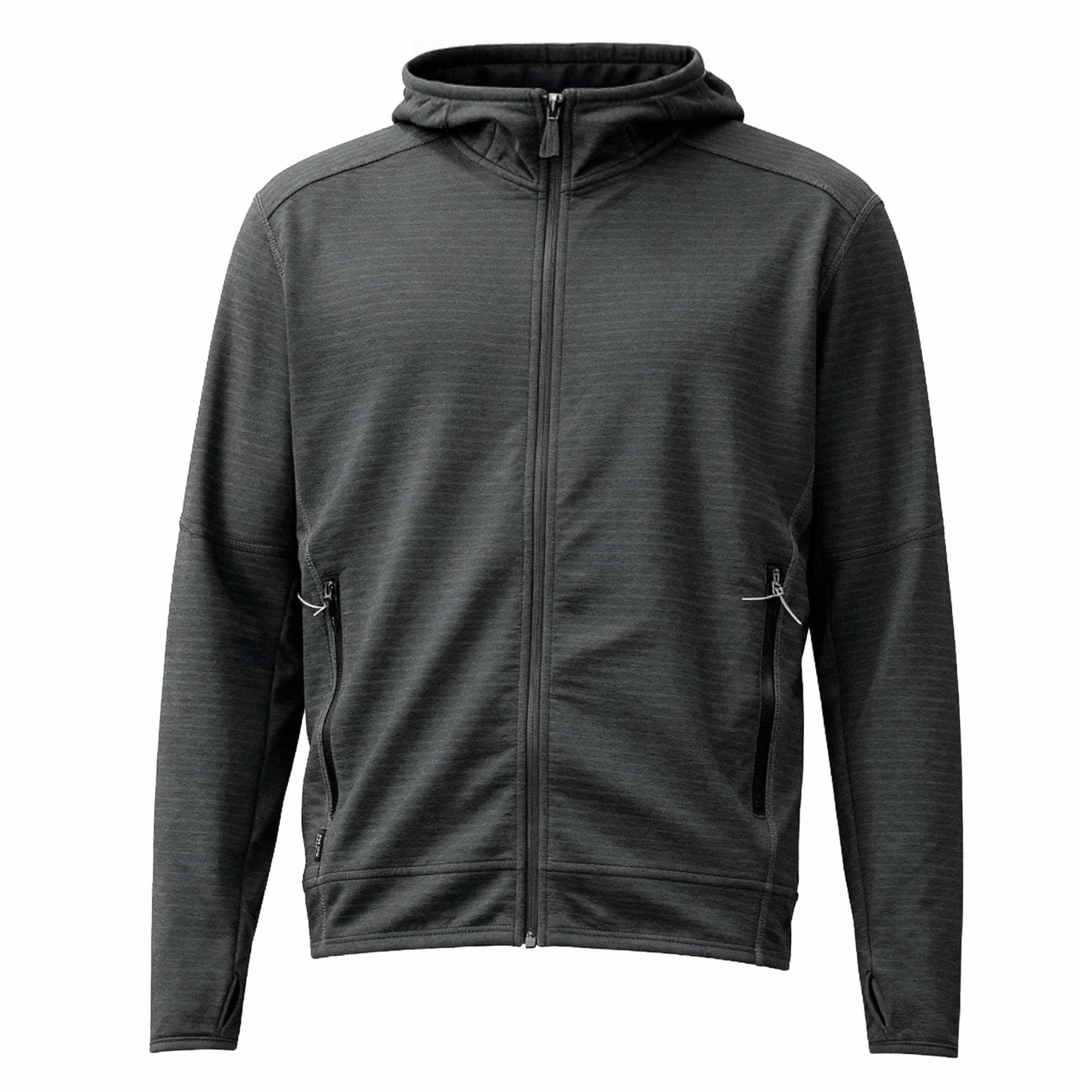 灰壳美利奴羊毛连帽外套男户外徒步登山保暖连帽开衫抓绒外套