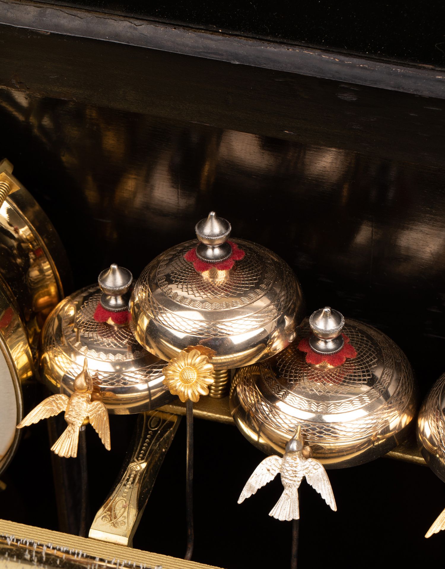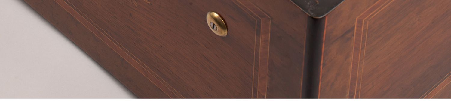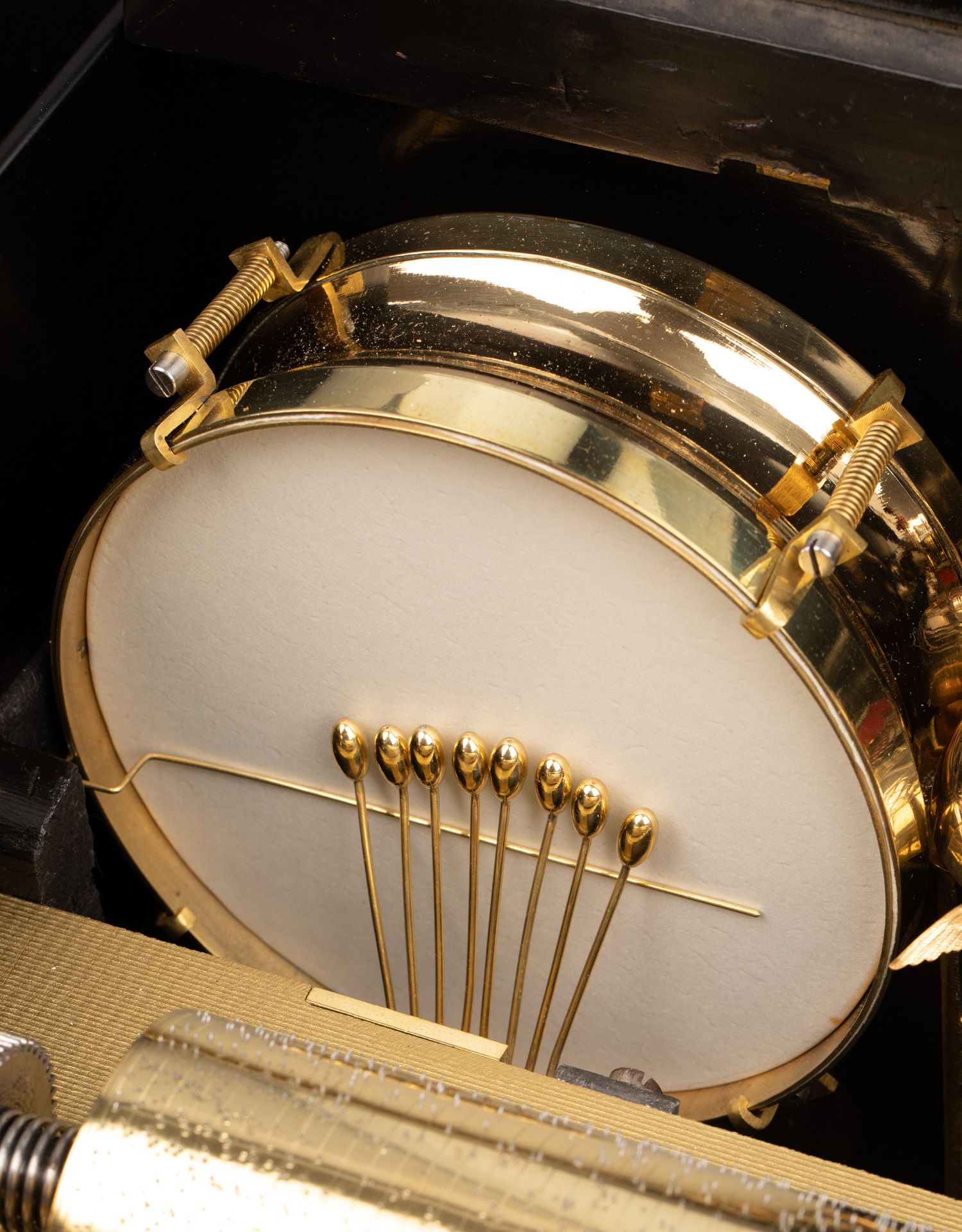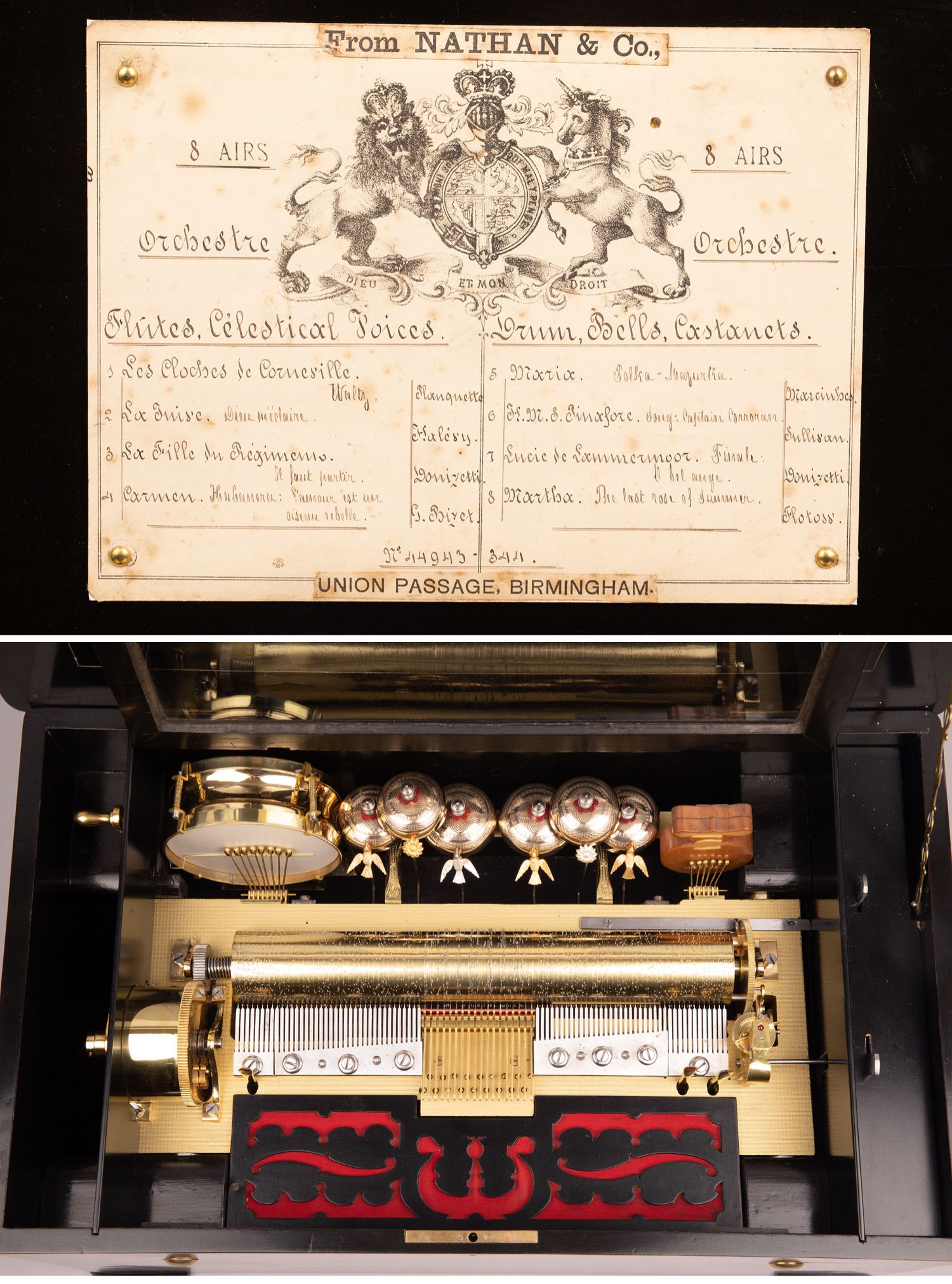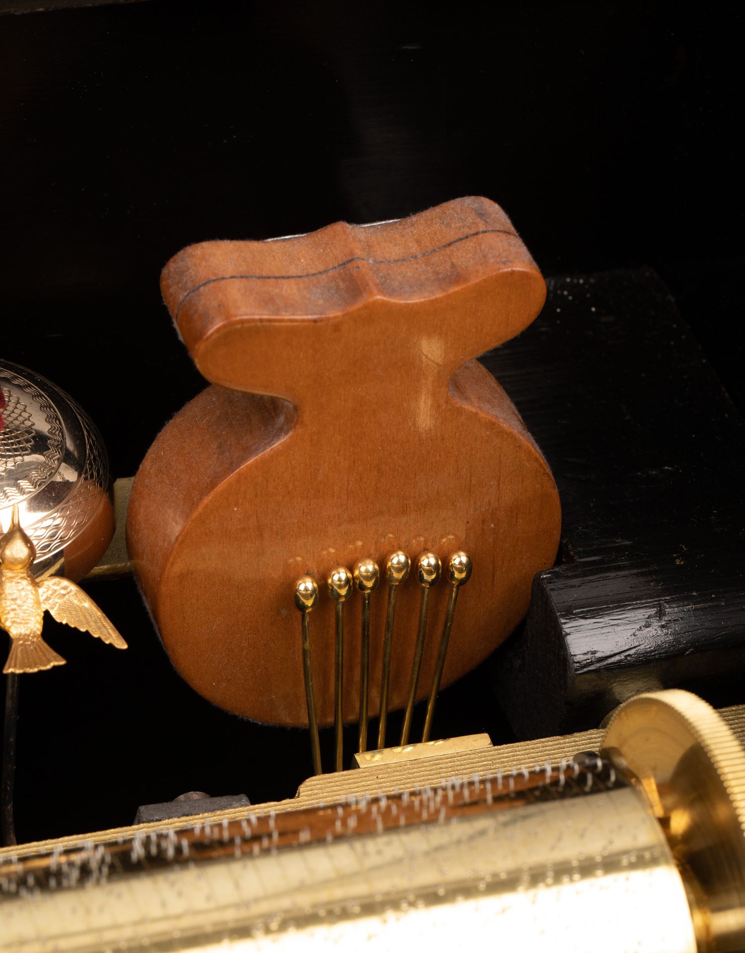 独角鹿西洋古董瑞士花卉主题细木镶嵌外箱配铃铛响鼓滚轴式音乐盒