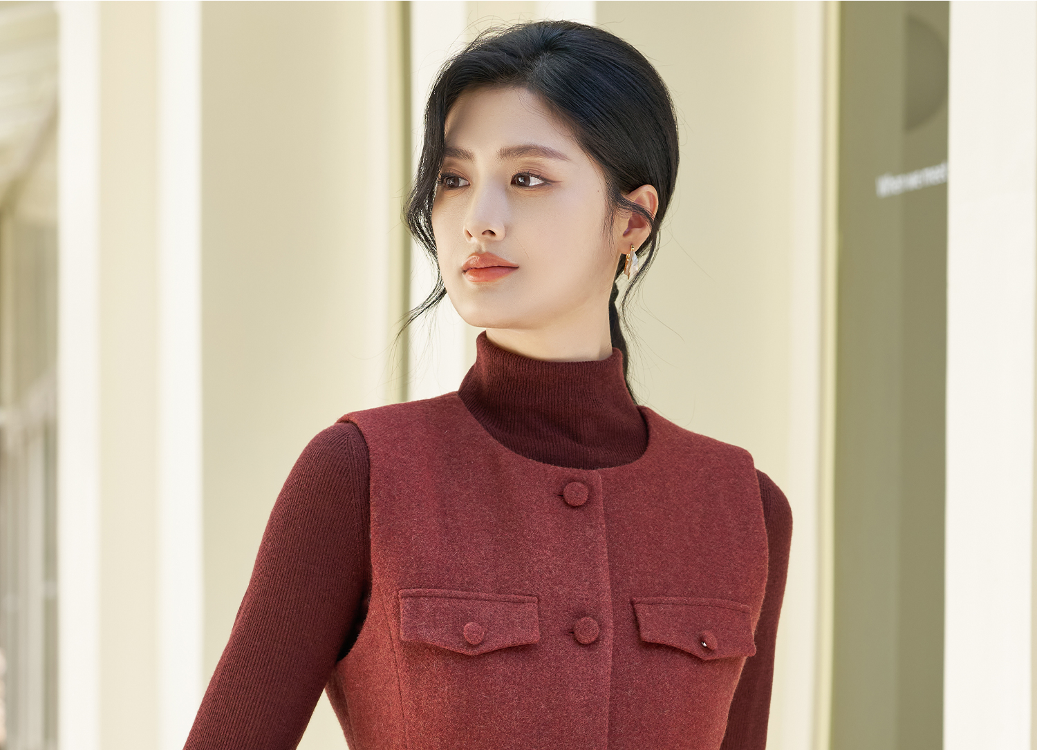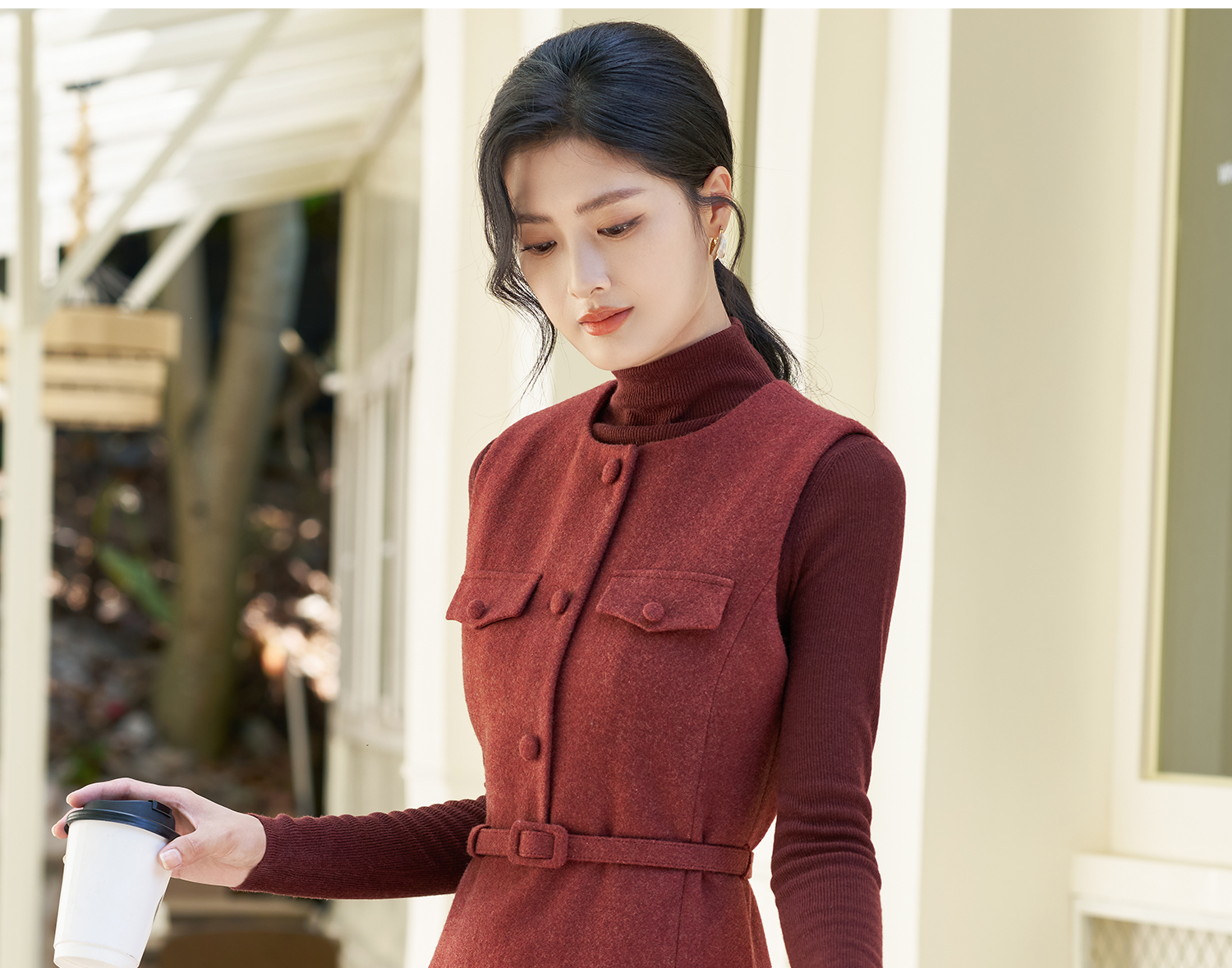 米思阳2025冬季新款气质女神范复古套装轻奢羊毛打底连衣裙两件套4522
