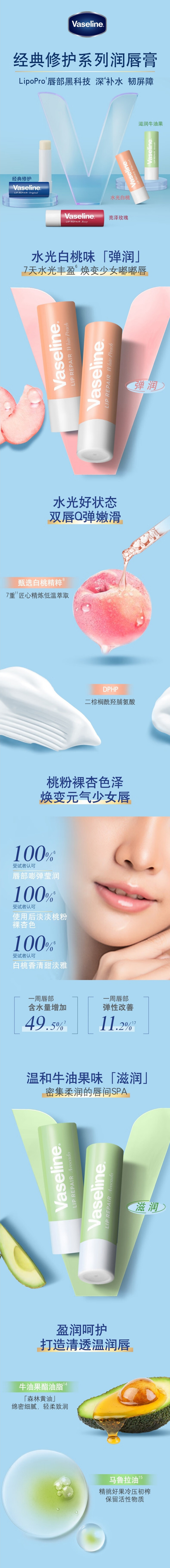 凡士林修护润唇膏白桃+牛油果3.5g*2
