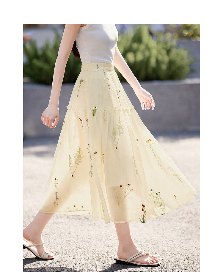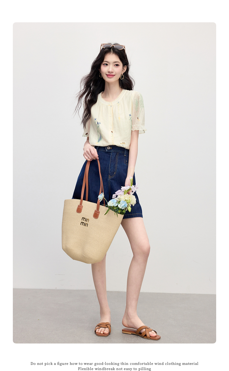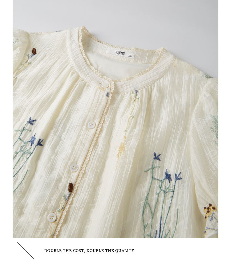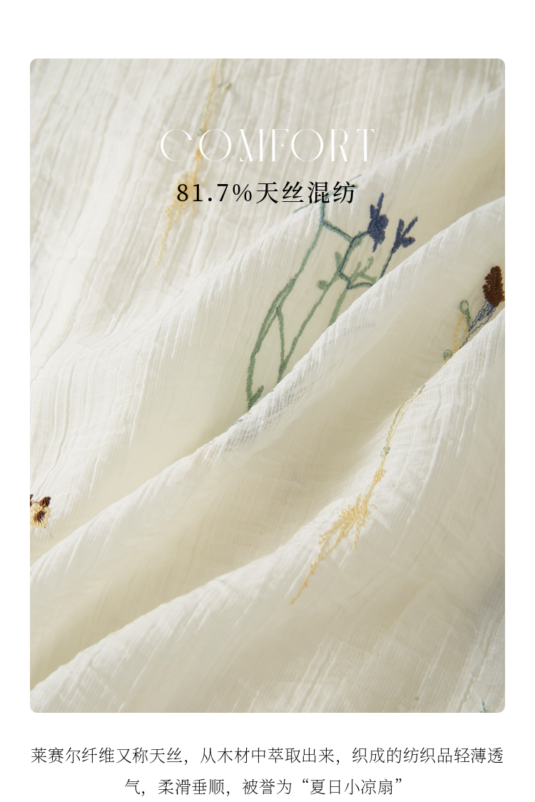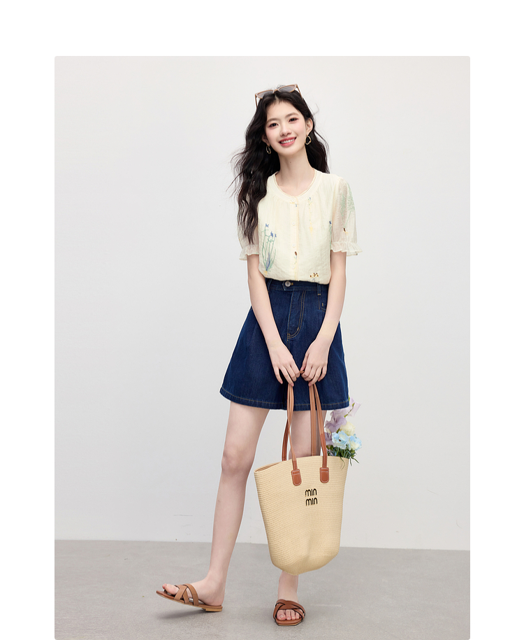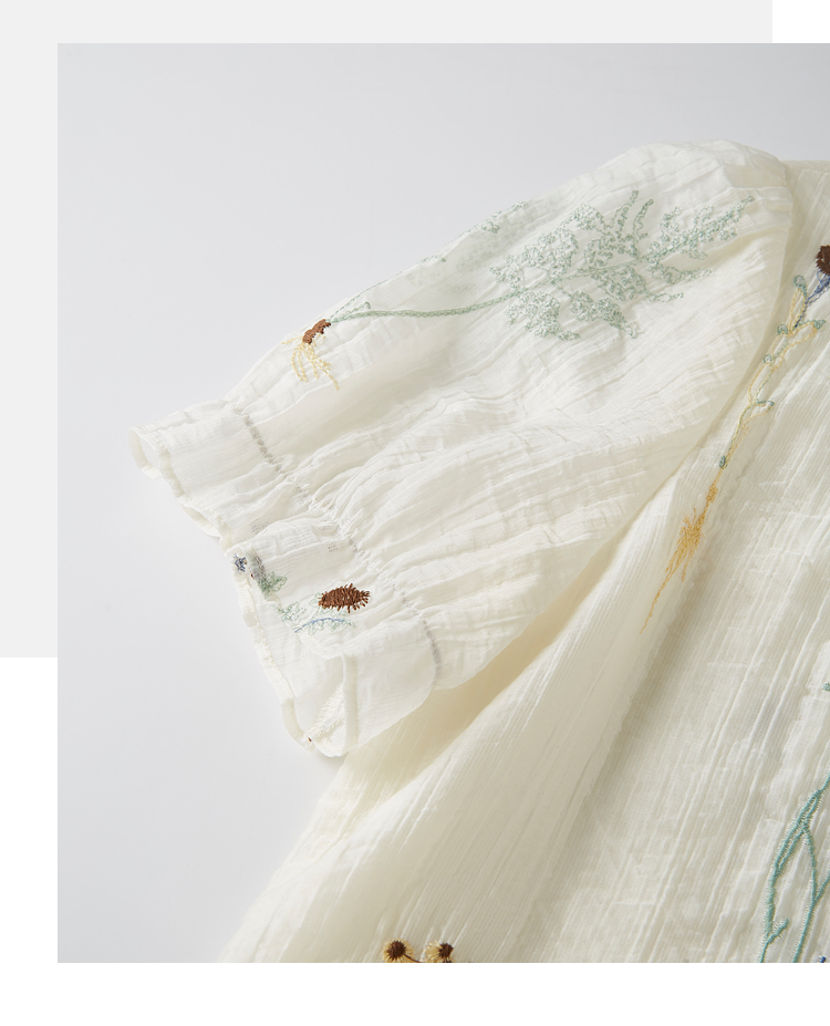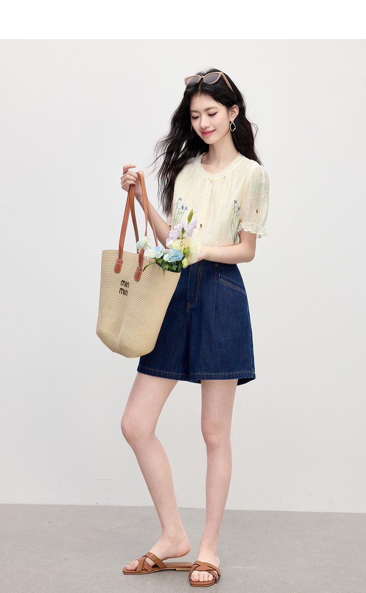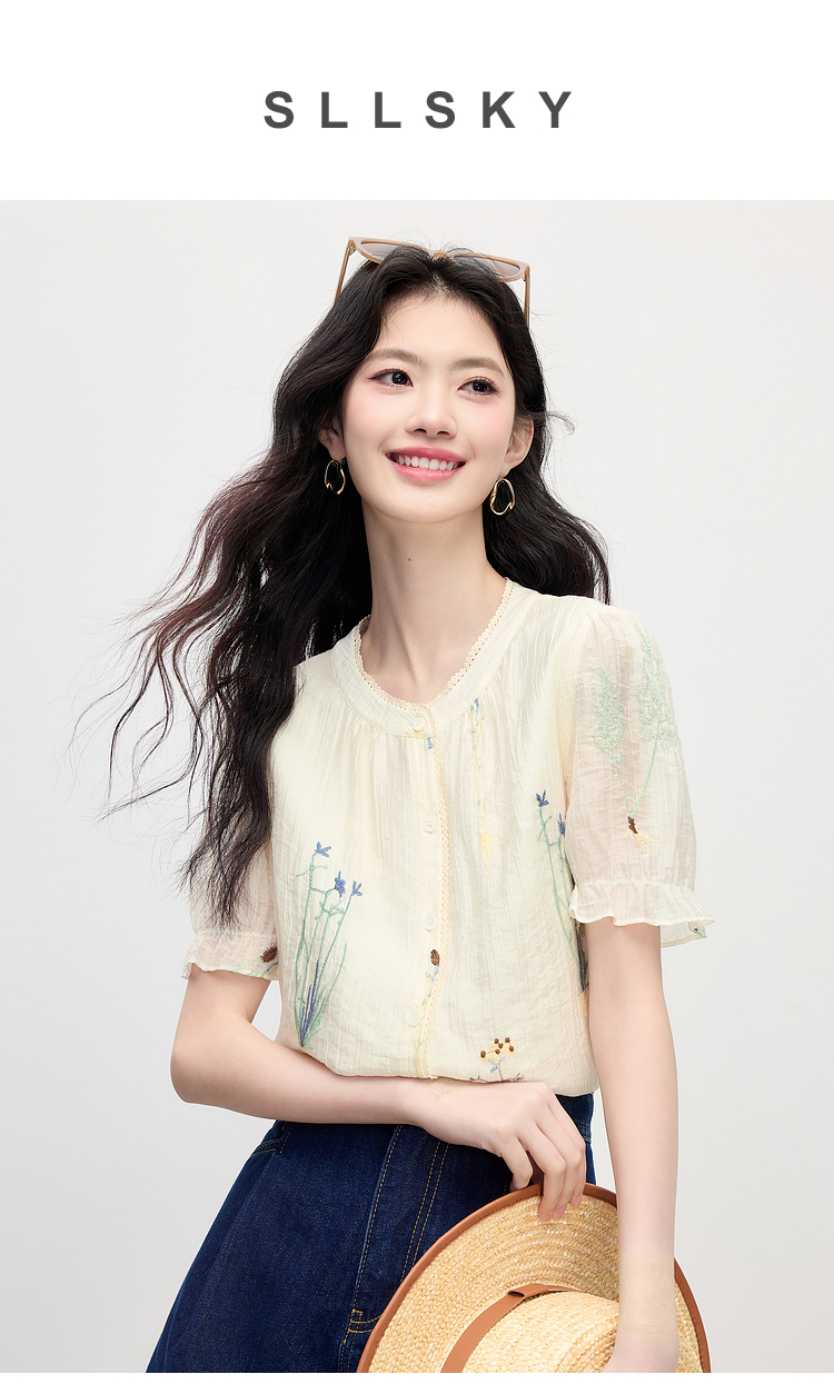 【周末秒杀】熙世界天丝印花圆领衬衫女2025夏季新款荷叶短袖气质正肩小衫上衣