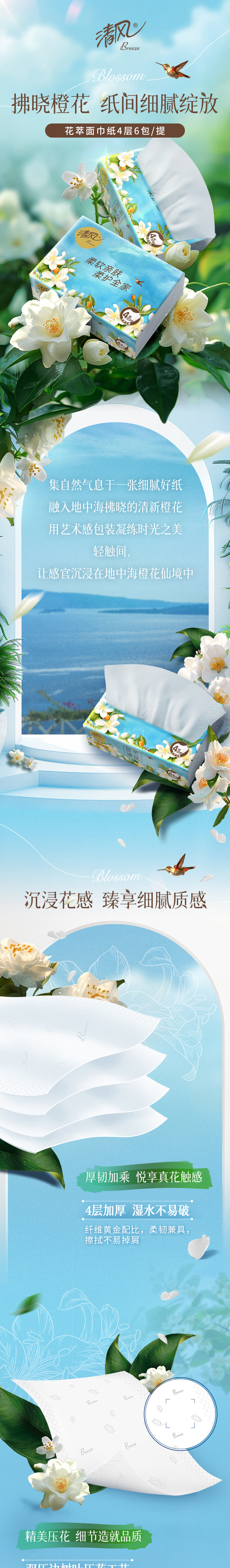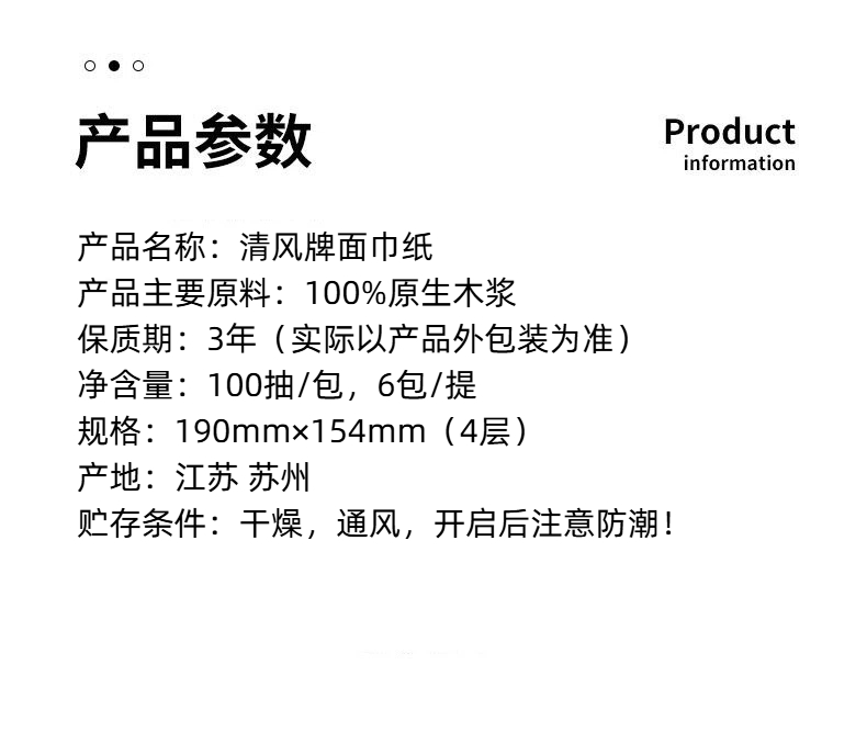 清风牌花萃面巾纸4层100抽*6包 【提】