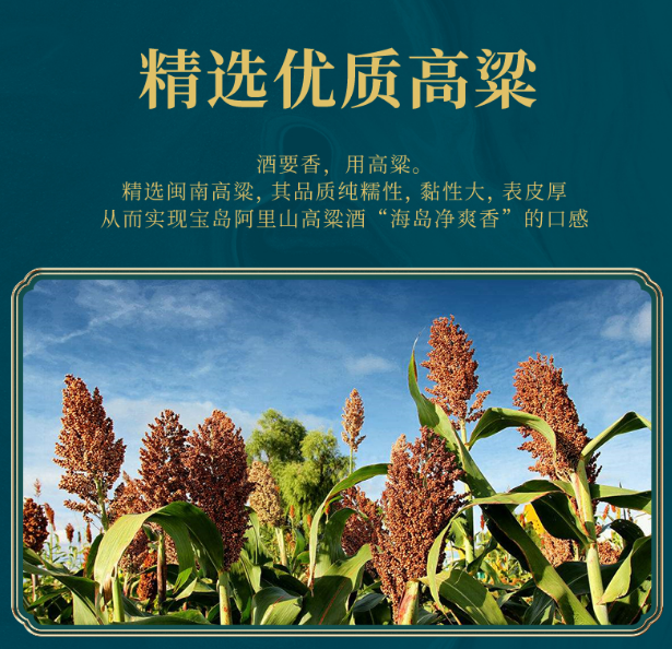 精选闽南高粱,其品质纯糯性,黏性大,表皮厚从而实现宝岛阿里山高粱酒“海岛净爽香”的口感。 花岗岩深层泉水 好山出好水,好水酿好酒!