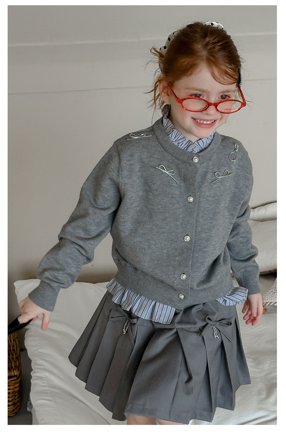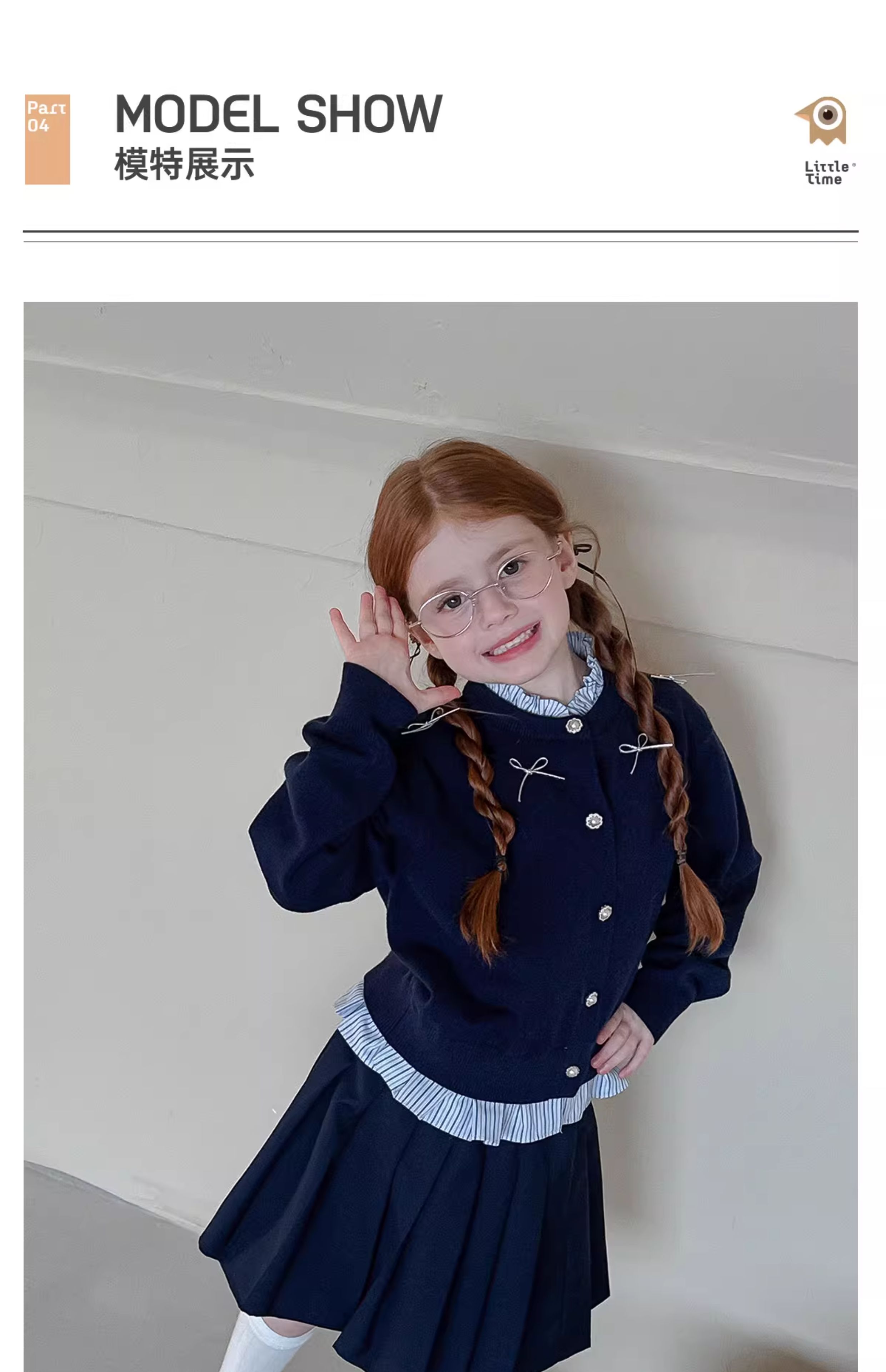 littletime女童套装2025秋冬新款洋气蝴蝶结针织衫百褶裙两件套