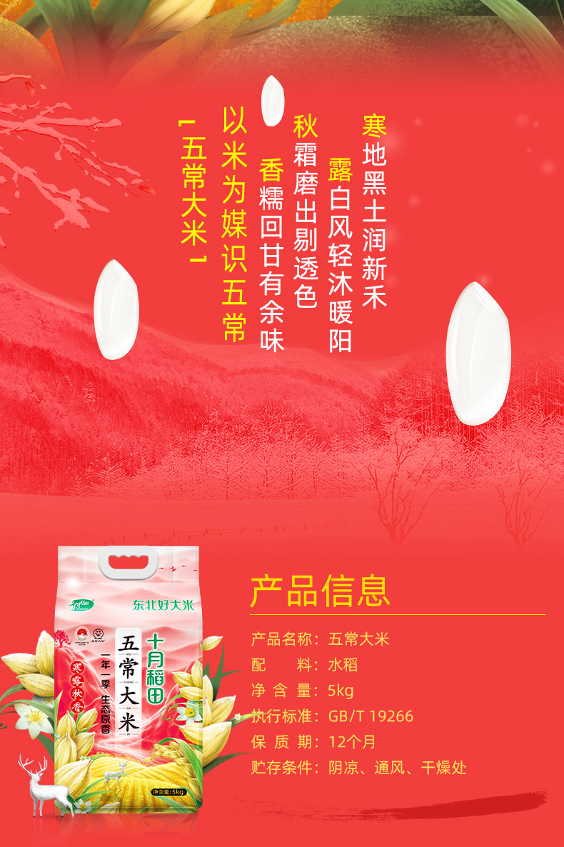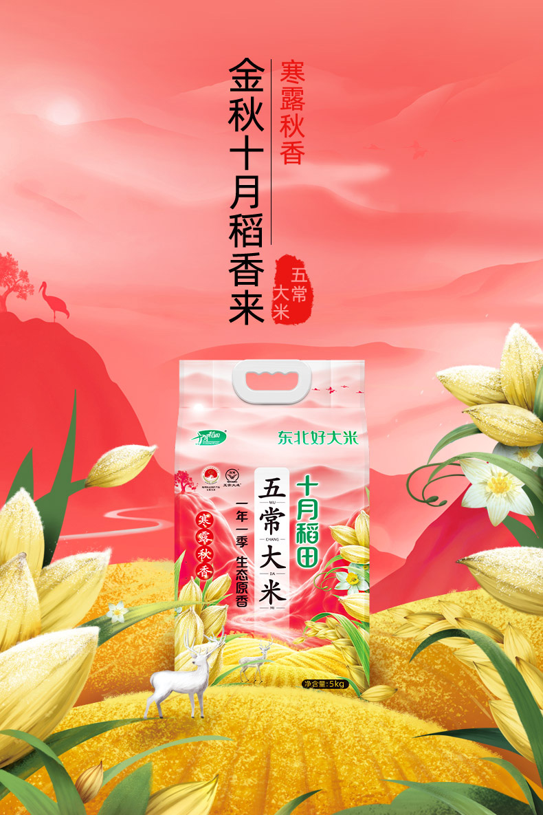 十月稻田五常大米真空装5kg