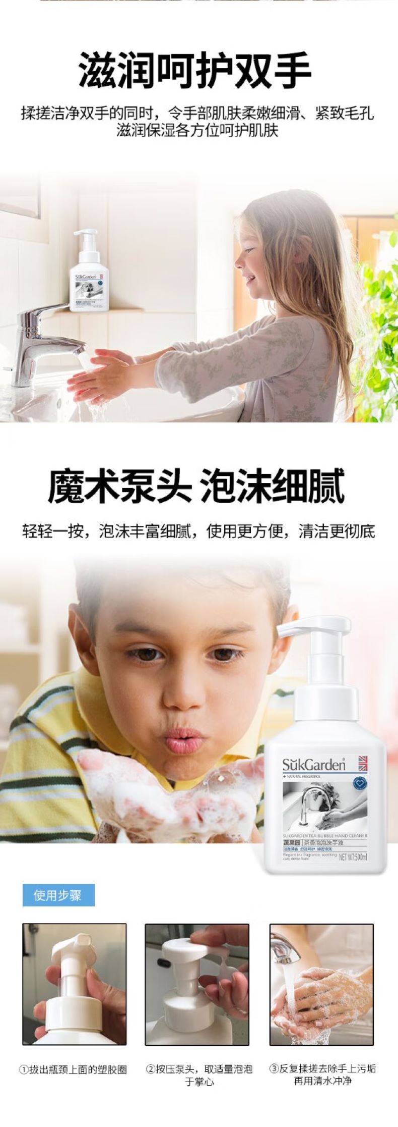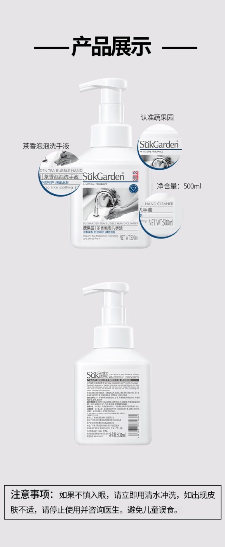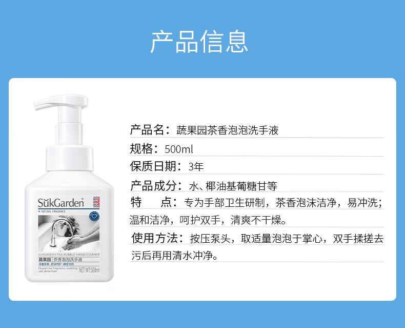 蔬果园茶香泡泡洗手液500ml*3瓶