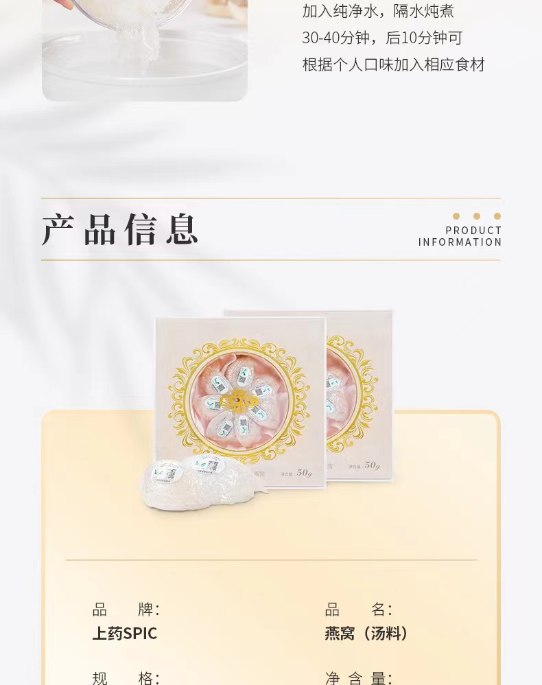 【进博好物064】上药 SPIC干盏燕窝 50g(礼盒)员工内购专享