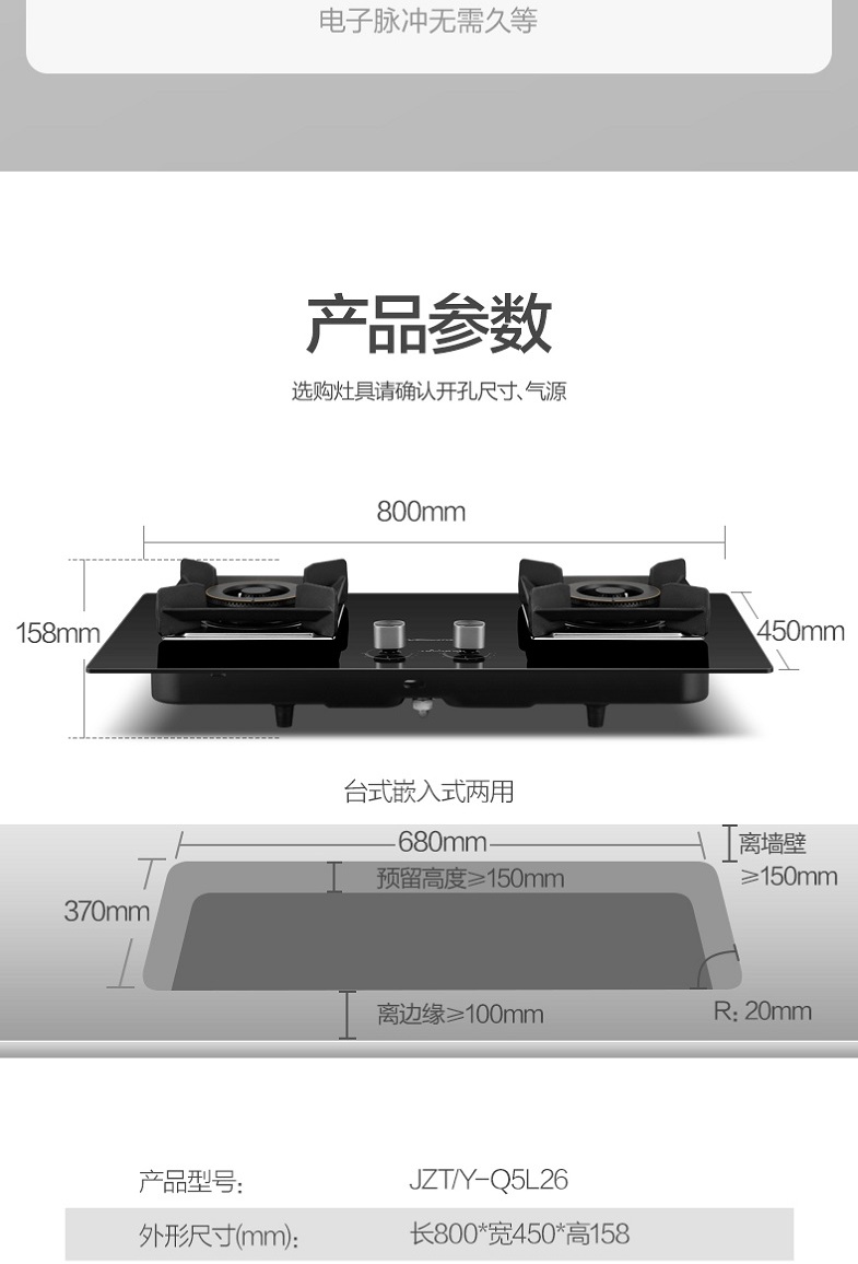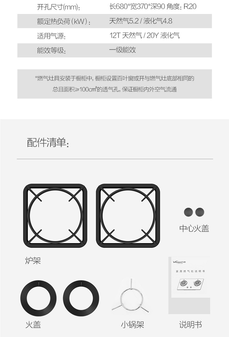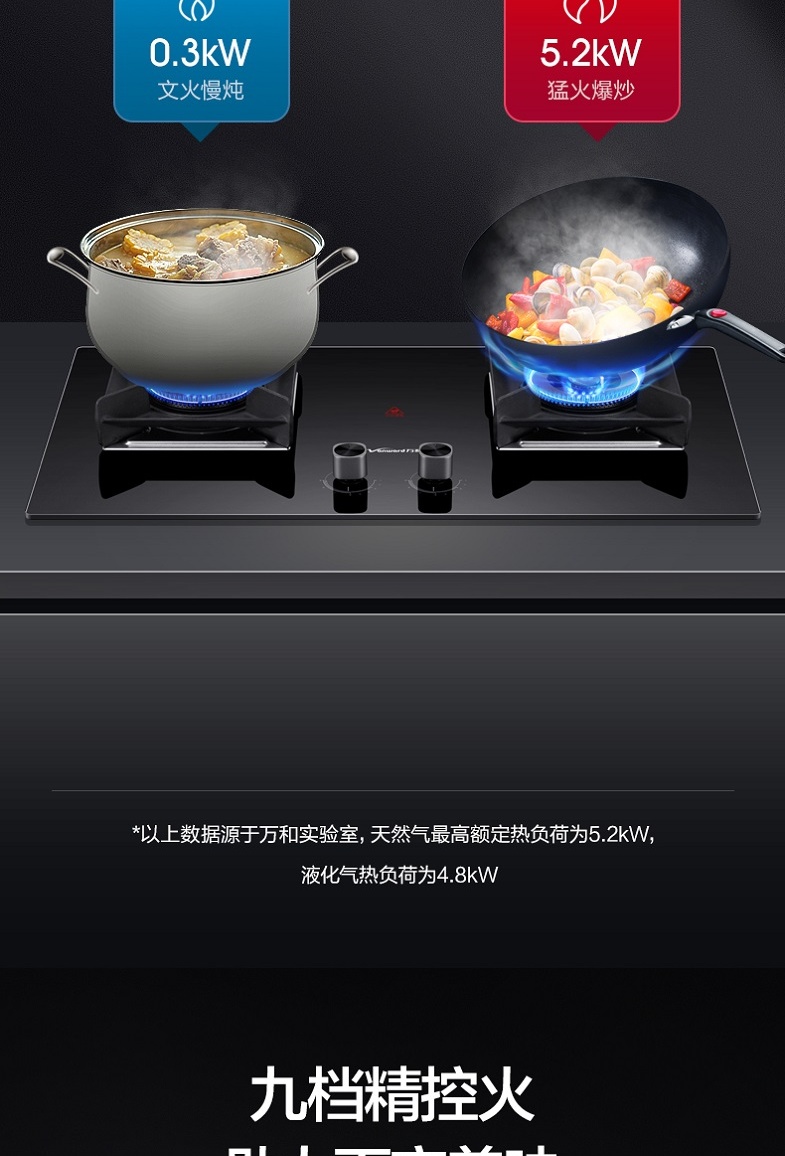 万和 Vanward 5.2KW大火力 可拆卸炉头 玻钢大面板燃气灶JZT-Q5L26