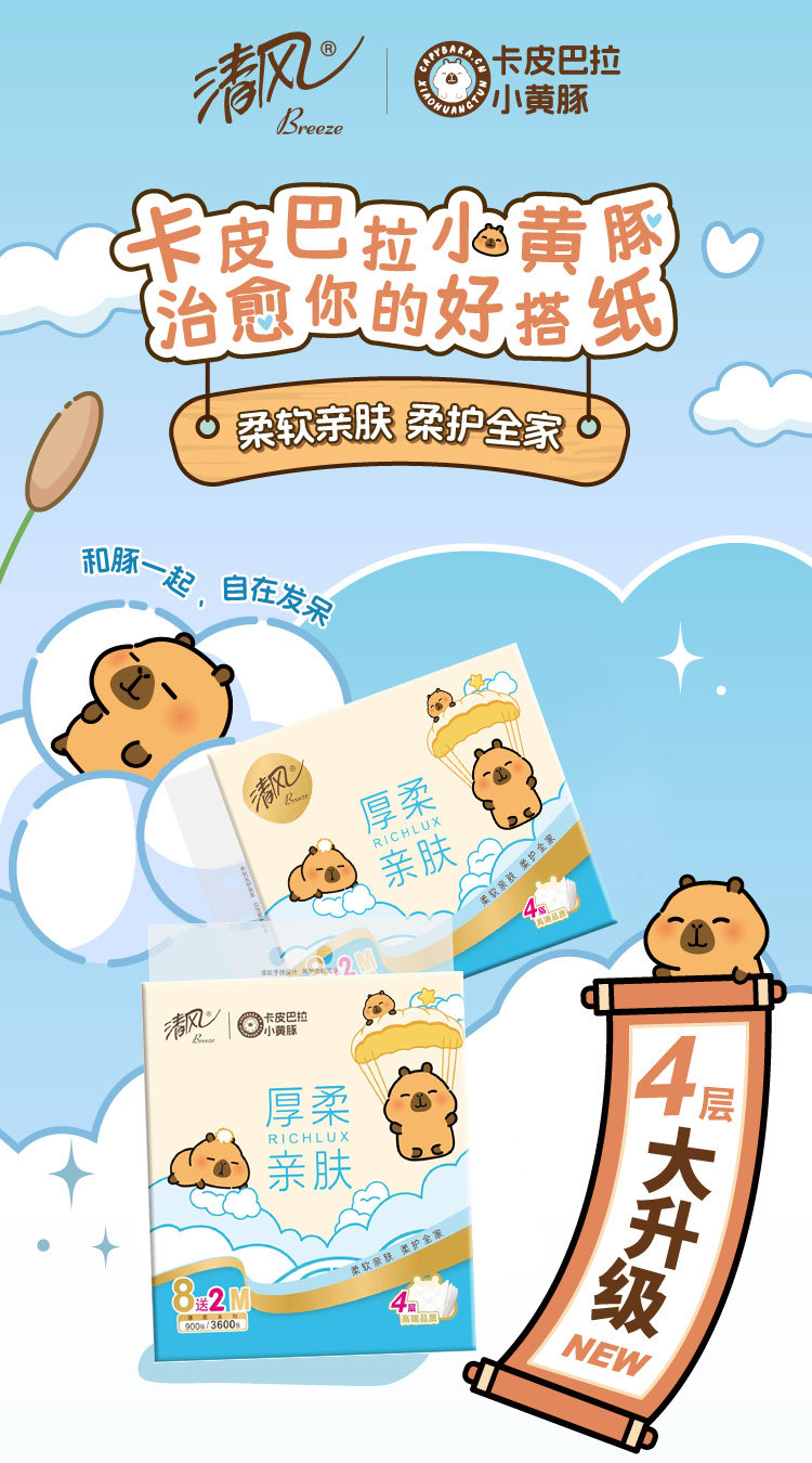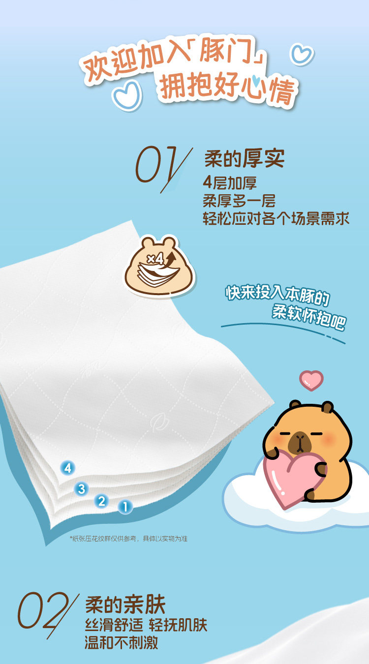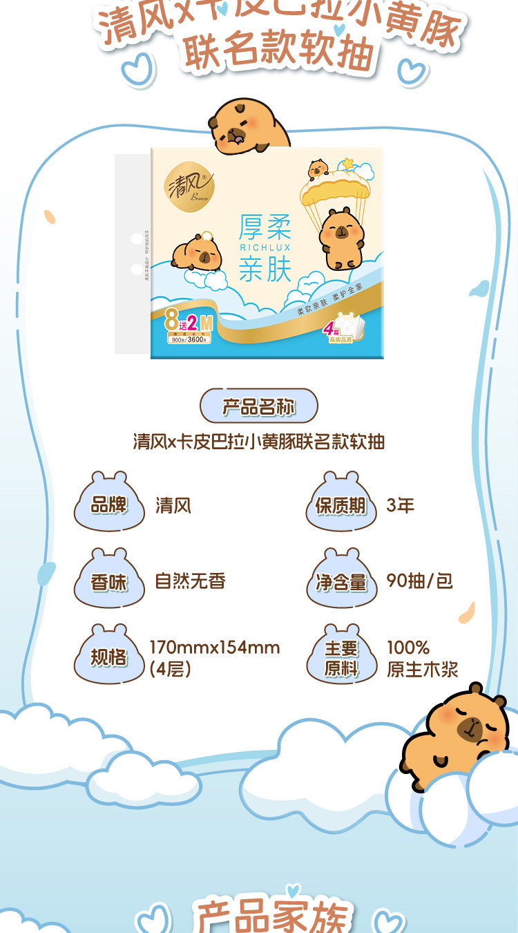 清风 厚柔系列4层抽取式面巾纸8包送2(90抽/包)