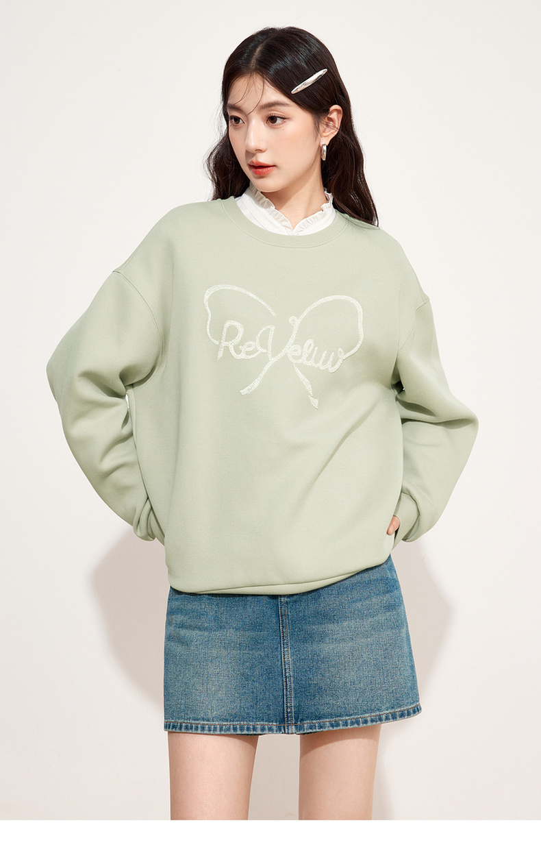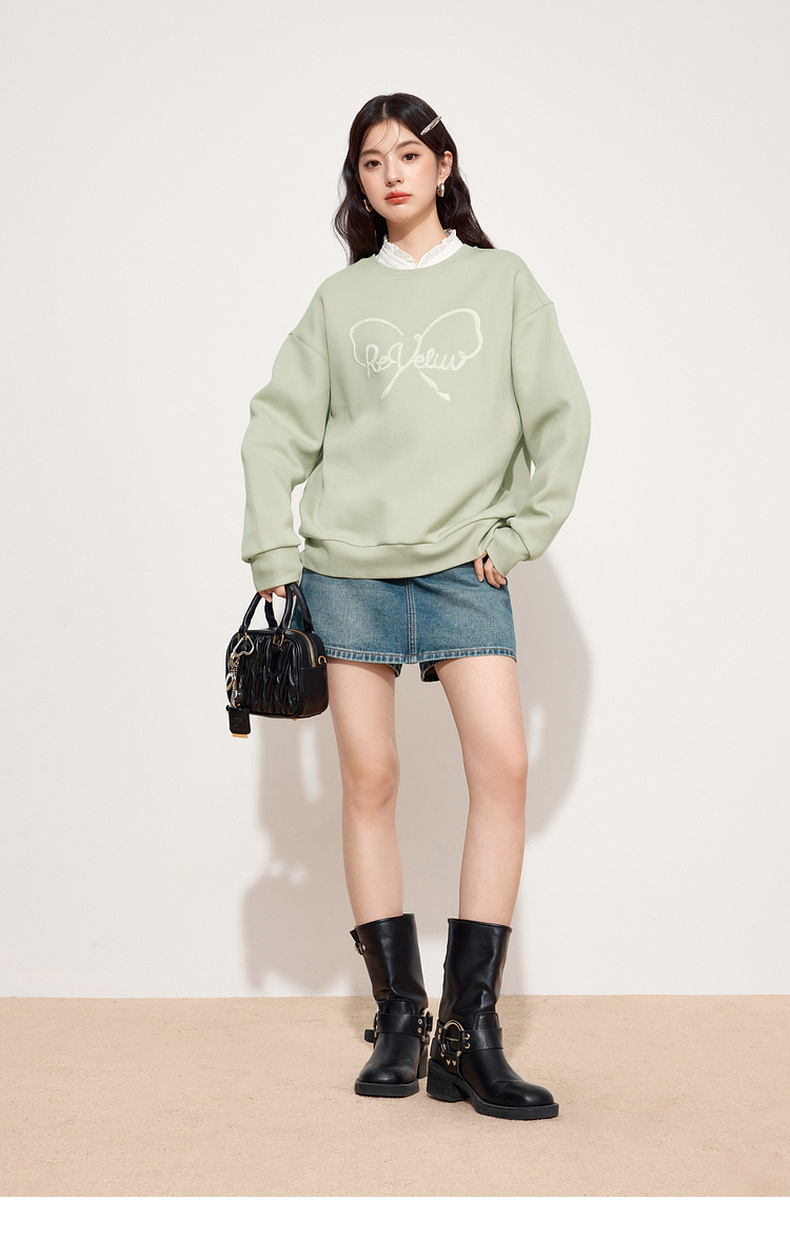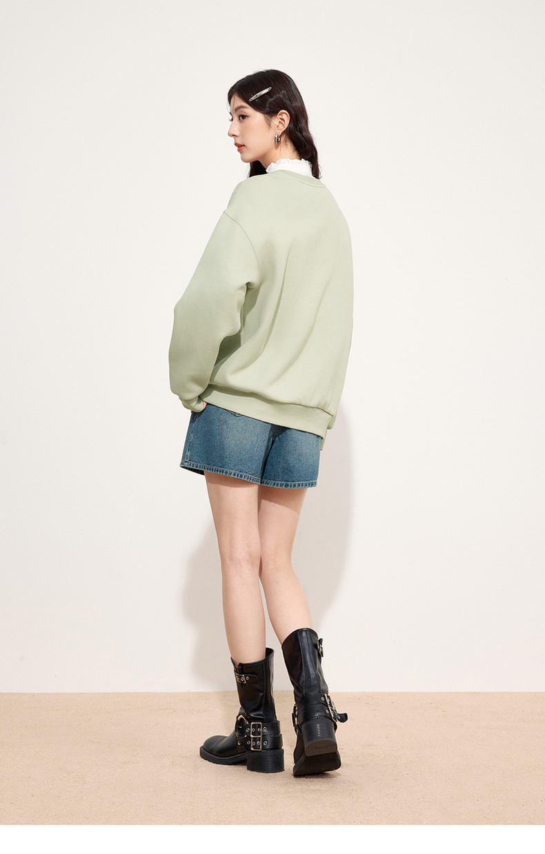【特惠不退货】诗凡黎圆领休闲套头卫衣2024秋新款卫衣女3F8201111