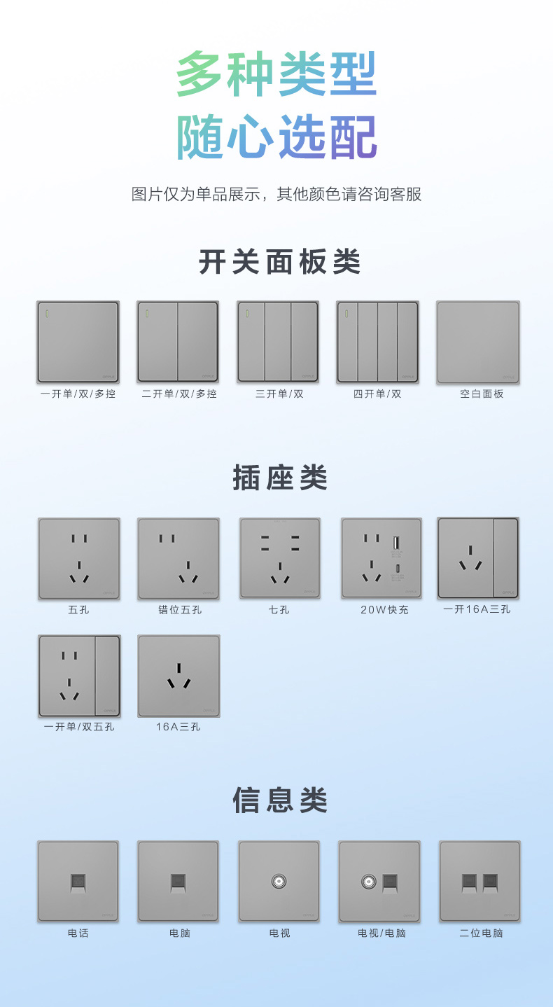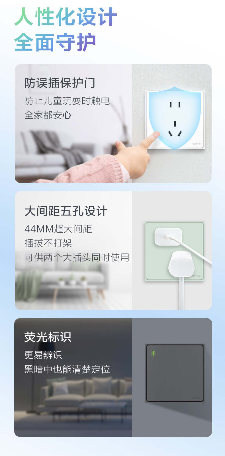 欧普(OPPLE)纯平开关插座W52悦绎月光白面板开关墙壁暗装电源二开多控