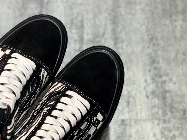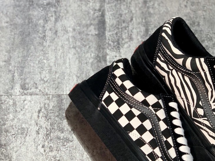 Vans Old Skool COMFYCUSH 棋盘格虎纹鸳鸯拼接全黑帆布鞋 官网新款2020秋季小黑鞋