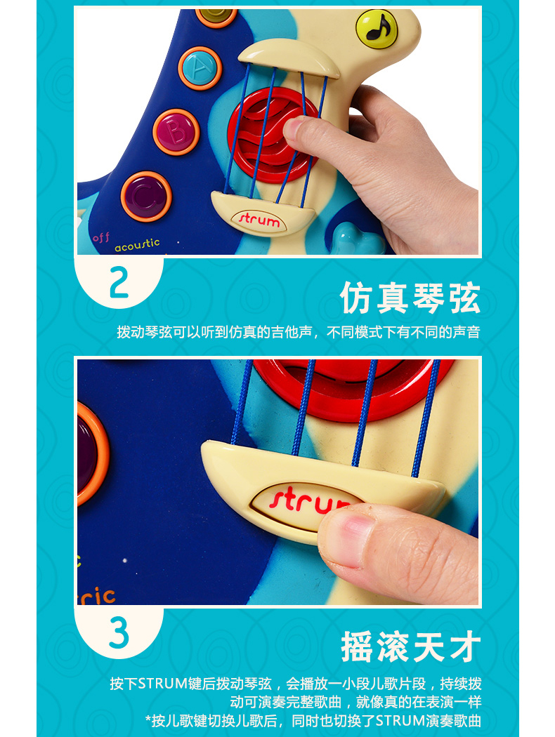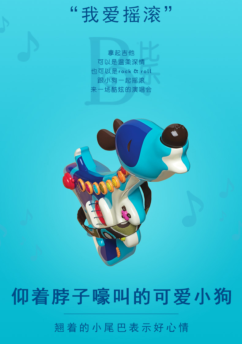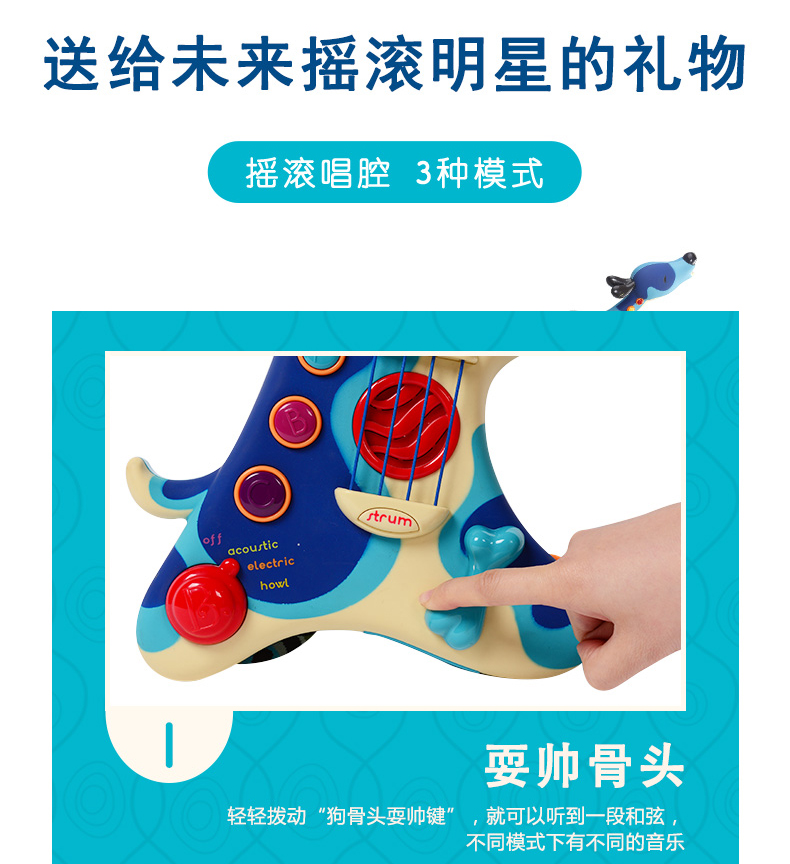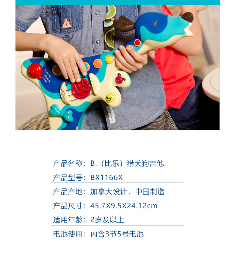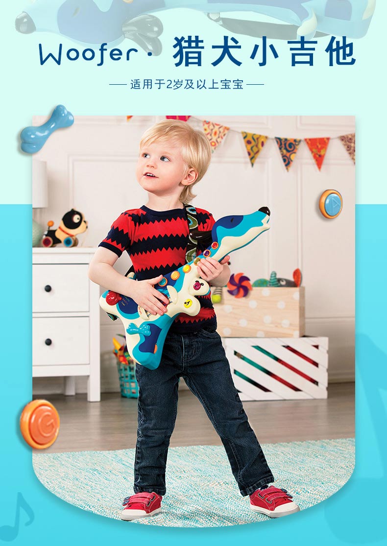 2岁+ | 美国B-toys 比乐 猎犬吉他 可弹奏初学乐器尤克里里男孩女孩