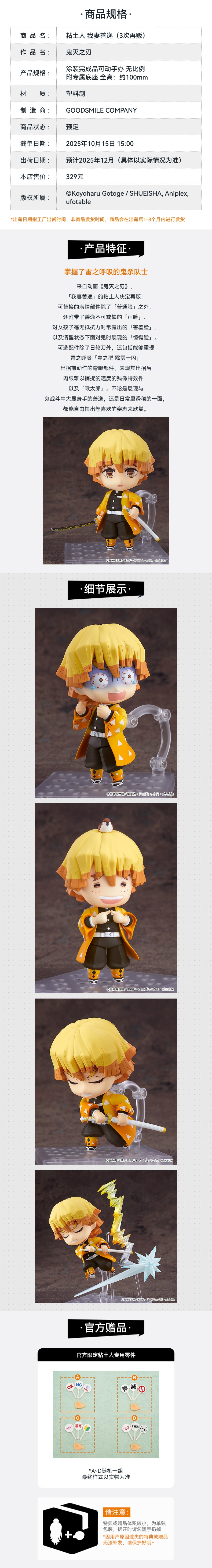 【GSC补款】粘土人 我妻善逸 鬼灭之刃 手办模玩