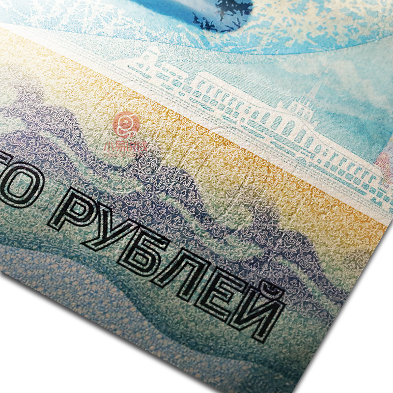 这是俄罗斯银行发行的首张奥运纪念钞,纸币图案首次设计为竖版 ,并且防伪原创力也很强。