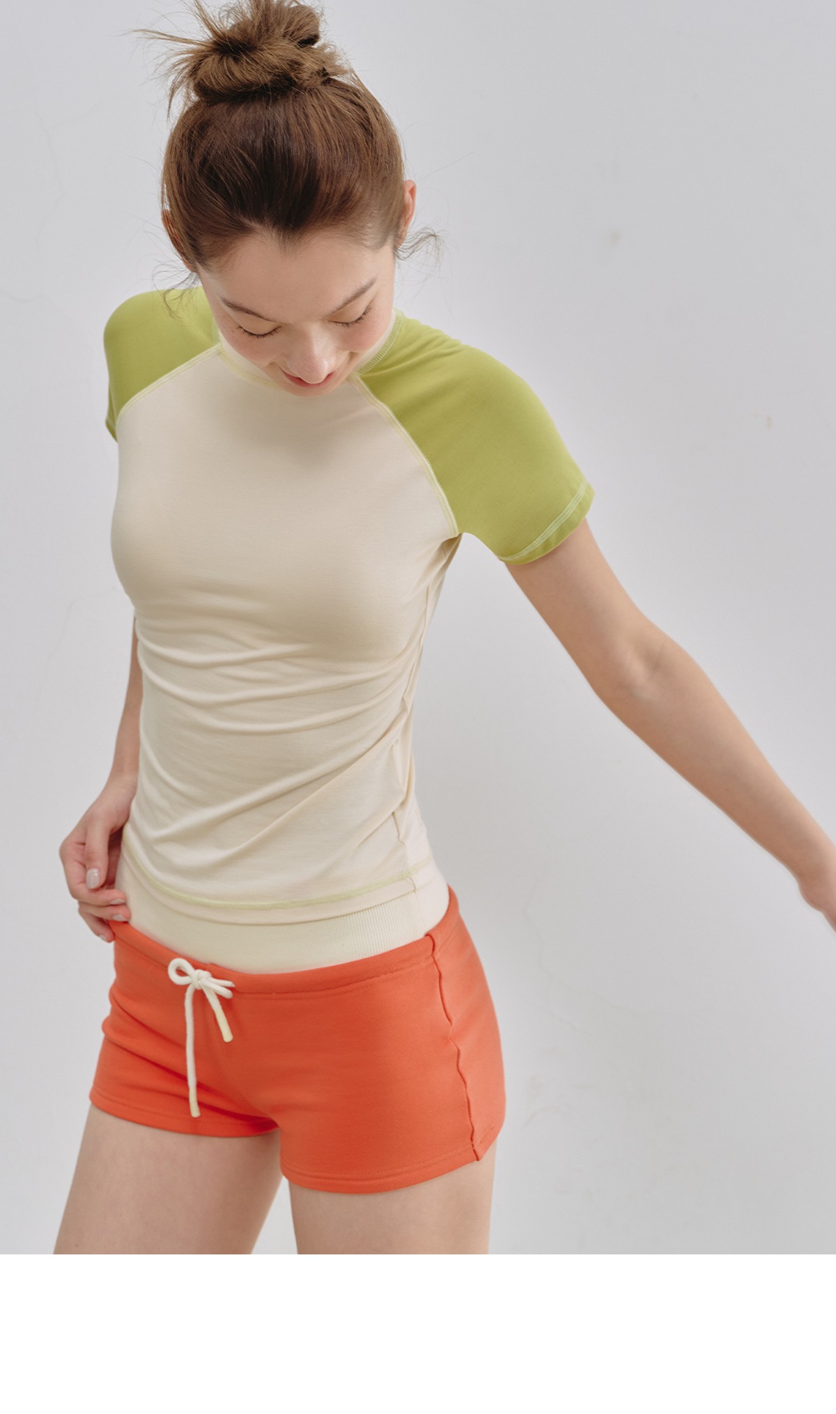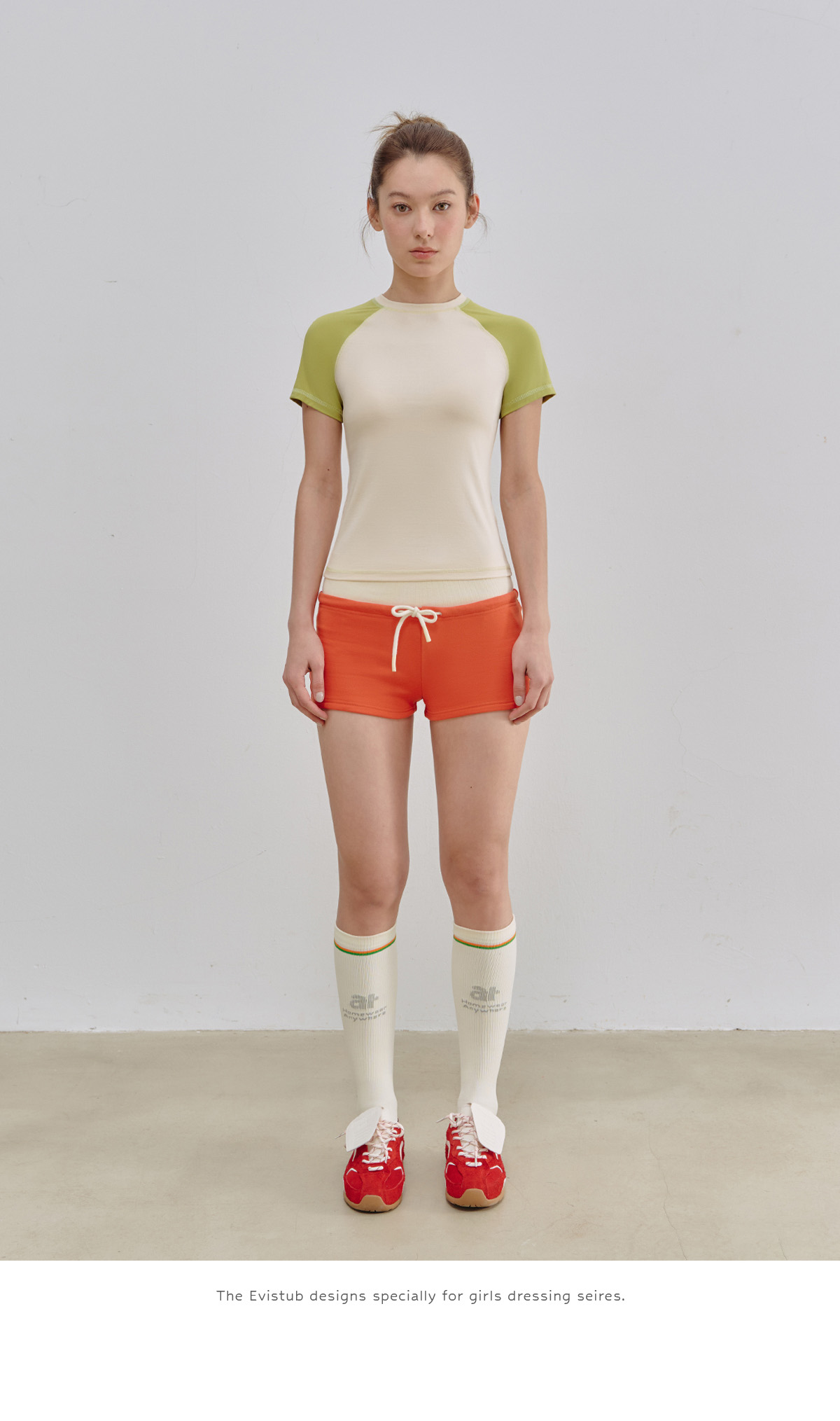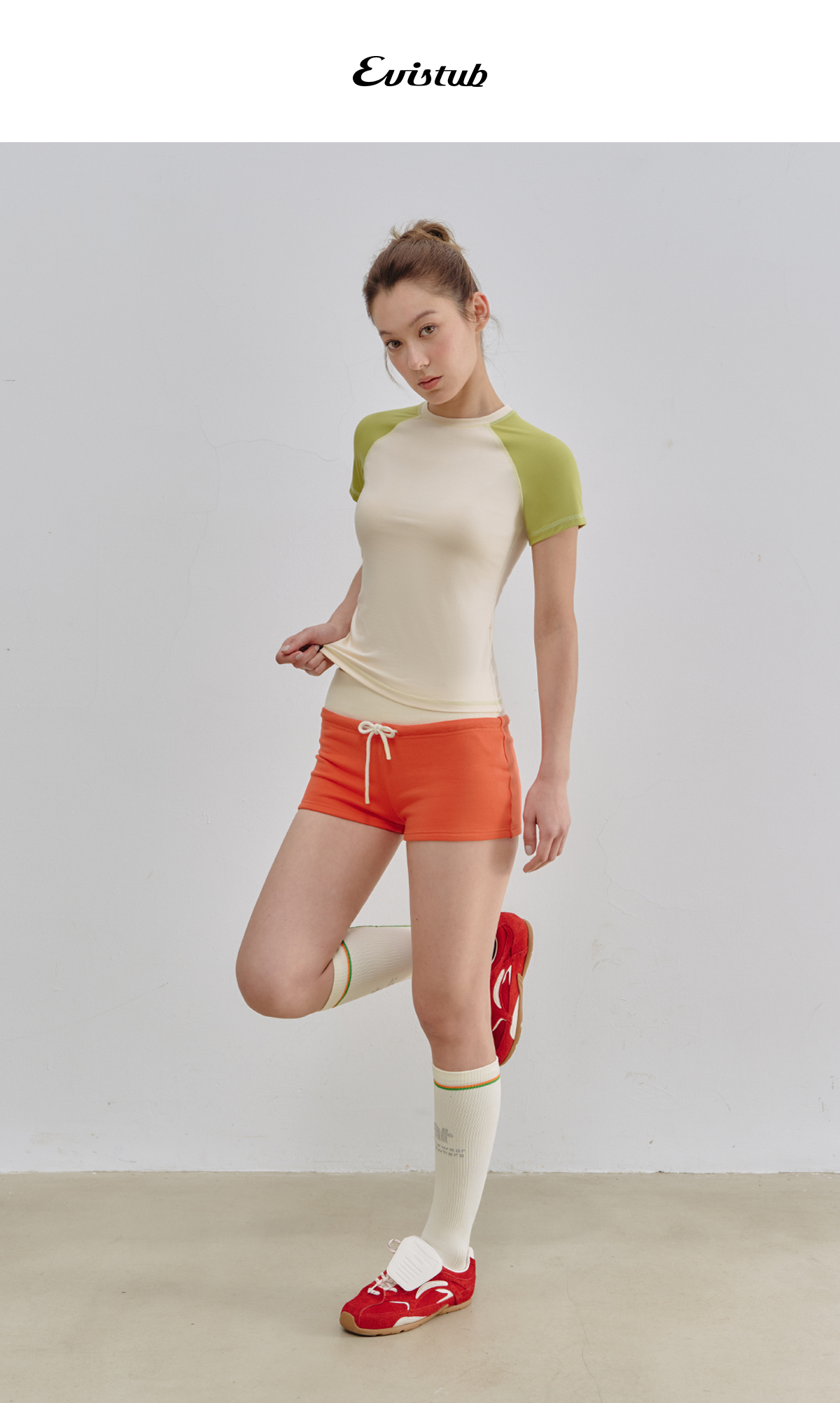Evistub女装/E-5XDX454/轻运动撞色插肩短袖女夏