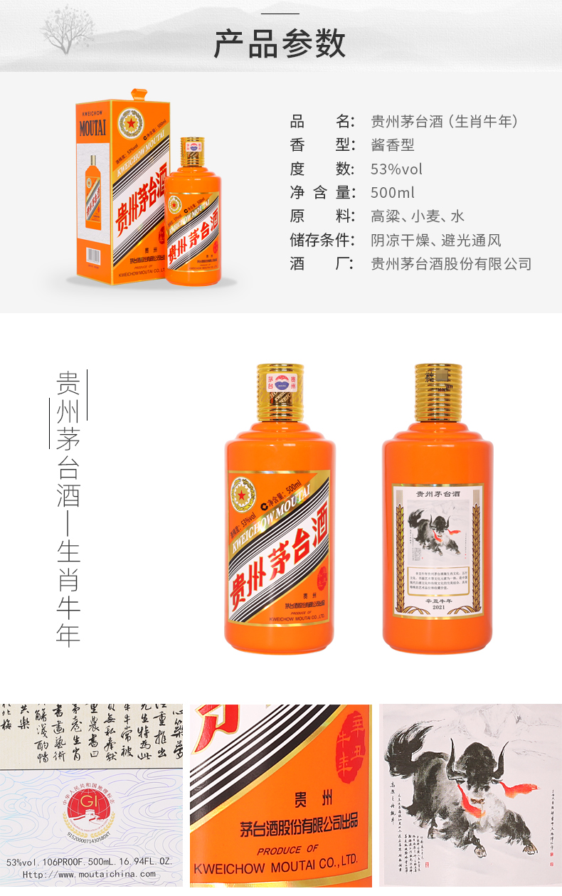 贵州茅台酒 2021年牛年生肖茅台500ml 53度酱香型白酒