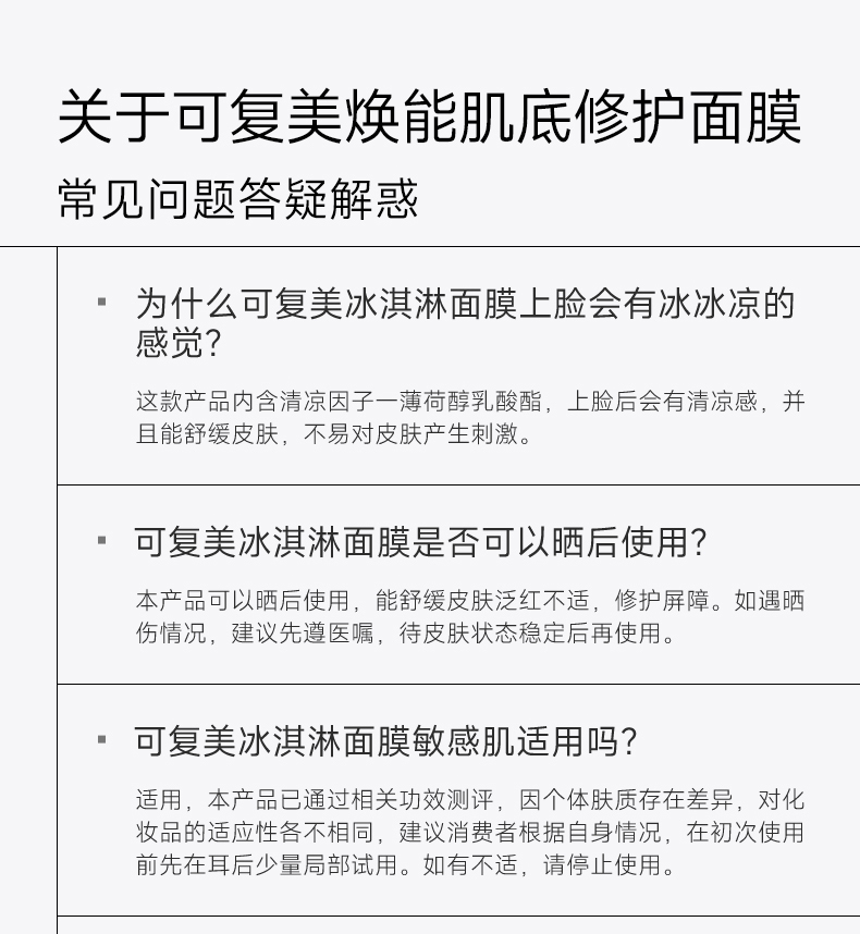 可复美冰淇淋涂抹式面膜舒缓保湿修护屏障水润焕能肌底面膜165g