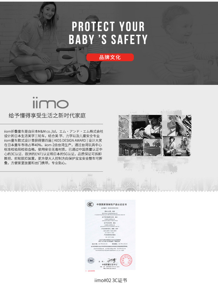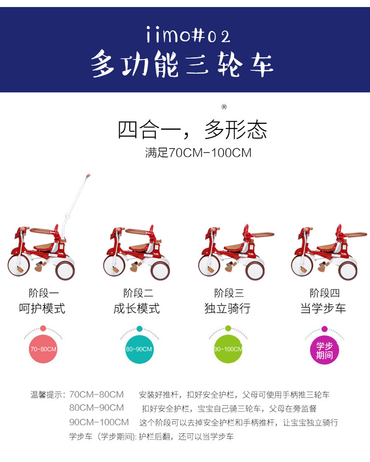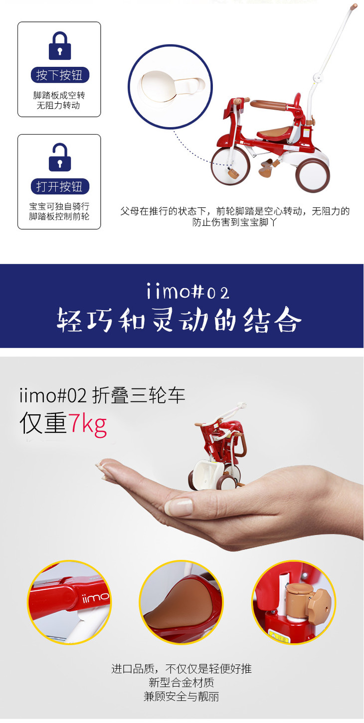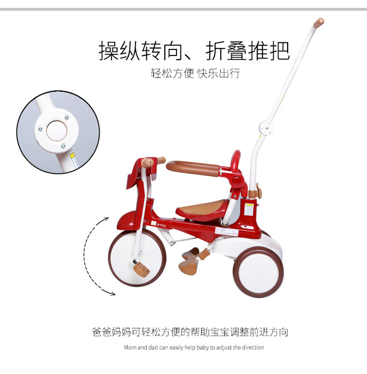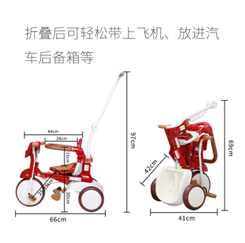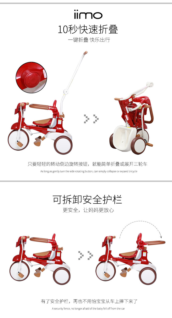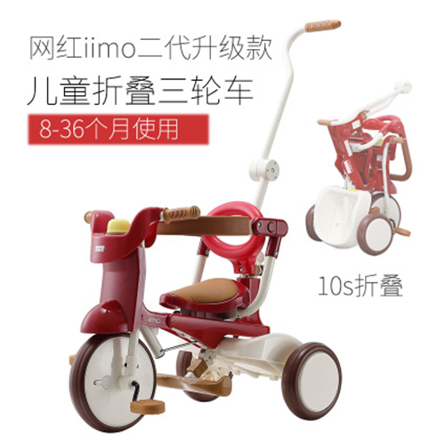 日本iimo二代+可折叠带伞篷红色三轮车【iimo】