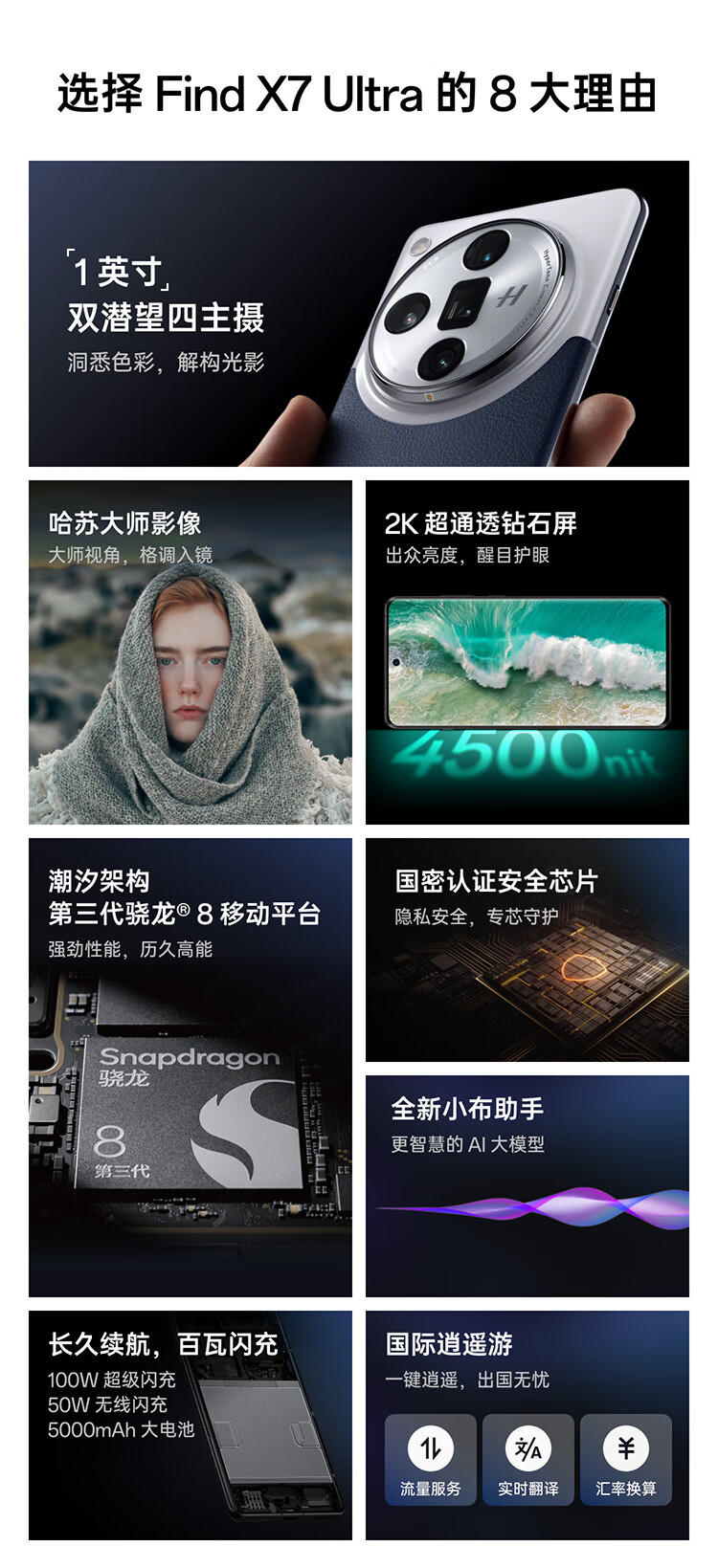 OPPO Find X7 Ultra 1英寸双潜望四主摄 哈苏影像 第三代骁龙8 5G拍照AI手机