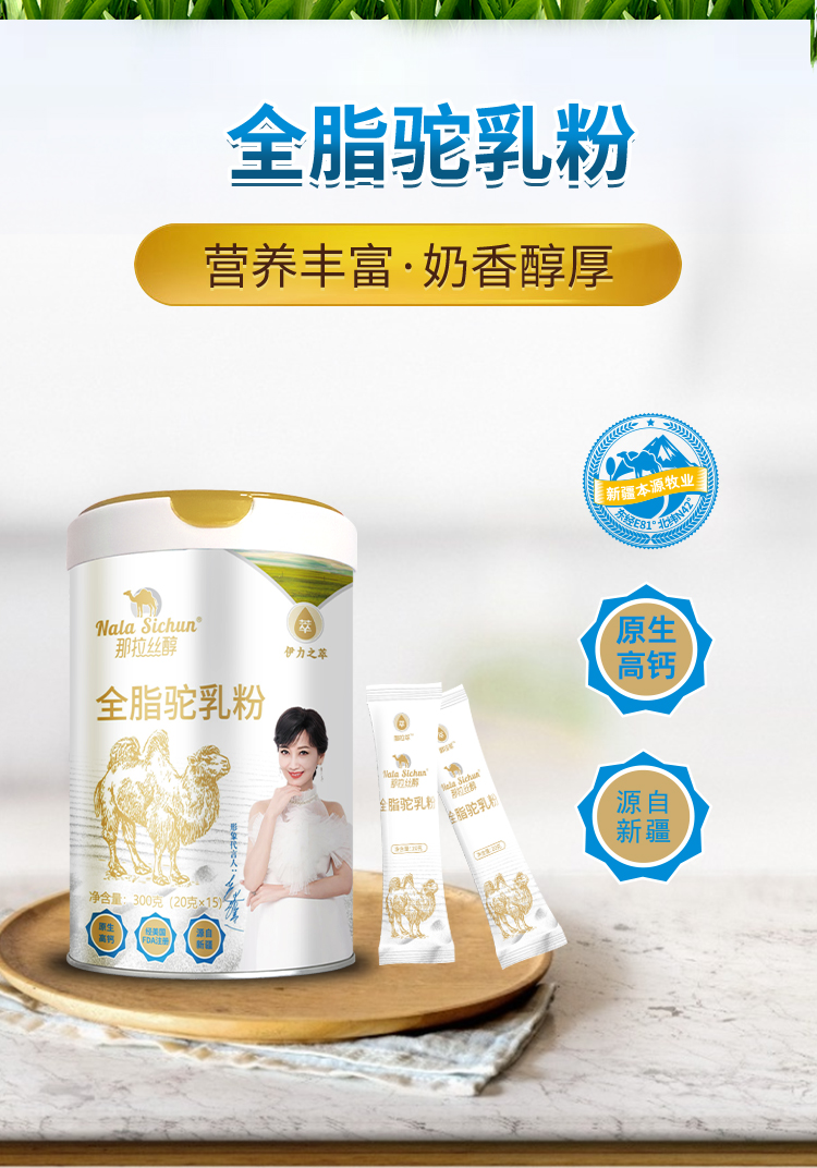 那拉丝醇全脂纯纯骆驼奶粉无添加无蔗糖新疆伊犁生产正宗学生儿童中老年驼乳粉300克独立包装