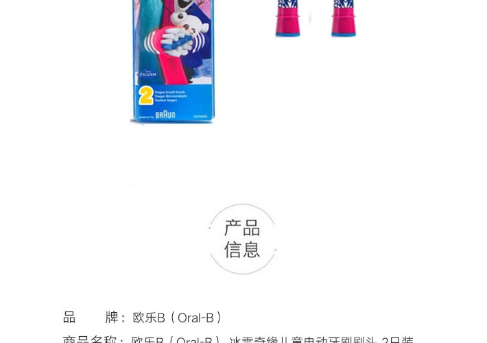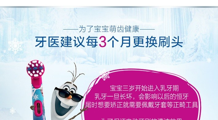 【新西兰直邮】德国欧乐BOral-B 儿童电动牙刷替换刷头D12 冰雪奇缘