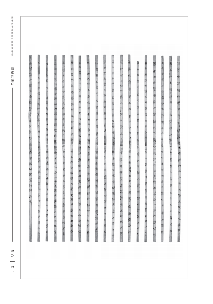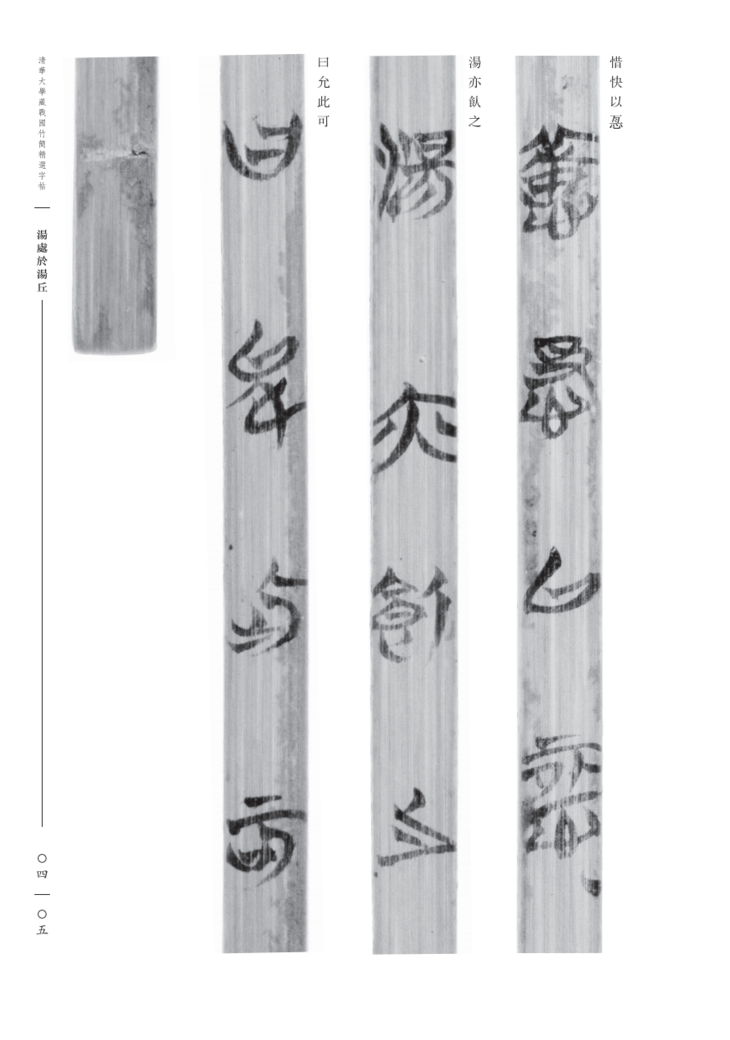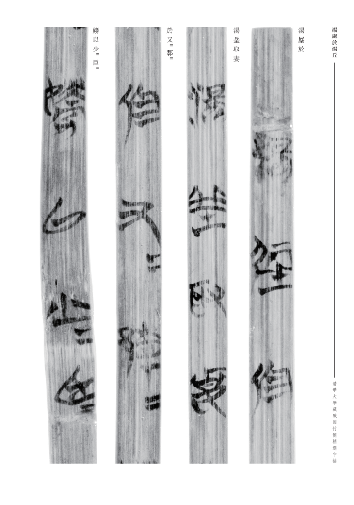《汤处于汤丘》篇共十九支简,简长约四十四•八四厘米,宽〇•六厘米。竹简保存状况良好,内容完整无缺。原无篇题和序号,今篇题系整理者所拟。